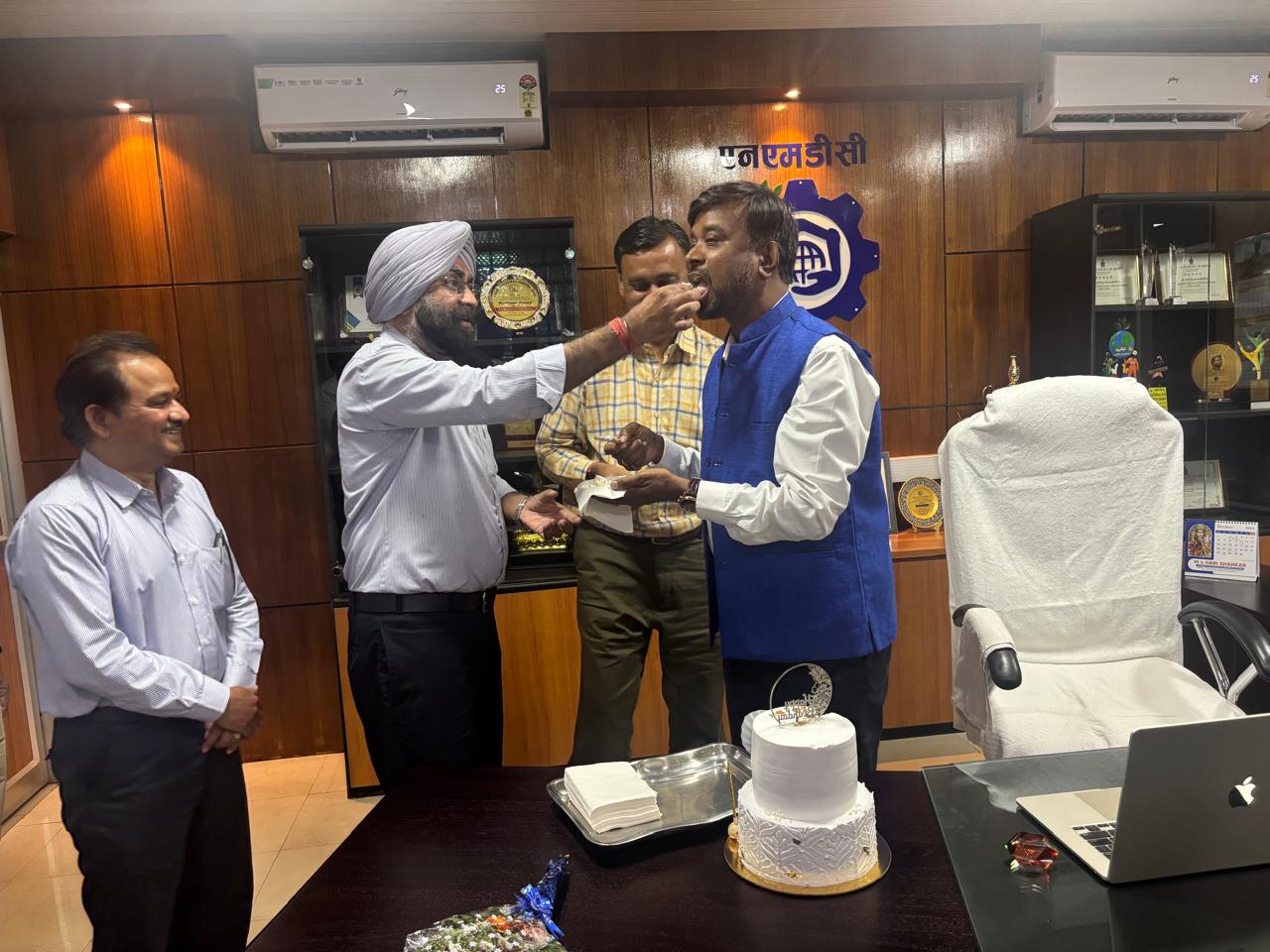 किरंदुल – देश में लौह अयस्क उत्पादन और प्रेषण की अव्वल दर्जे की नवरत्न कंपनी नेशनल मिनरल डेवलपमेंट कॉर्पोरेशन एनएमडीसी की मदर प्रोजेक्ट एनएमडीसी किरंदुल परियोजना के अधिशासी निदेशक रबिन्द्र नारायण के जन्मदिन पर एनएमडीसी किरंदुल परियोजना प्रबंधन के शीर्ष अधिकारियों एवं किरंदुल परियोजना की श्रमिक संगठनों ने किरंदुल परियोजना के अधिशासी निदेशक रबिन्द्र नारायण के प्रशासनिक कार्यालय में जा कर केक काटकर उनकों जन्मदिन की हार्दिक बधाई प्रेषित की ।