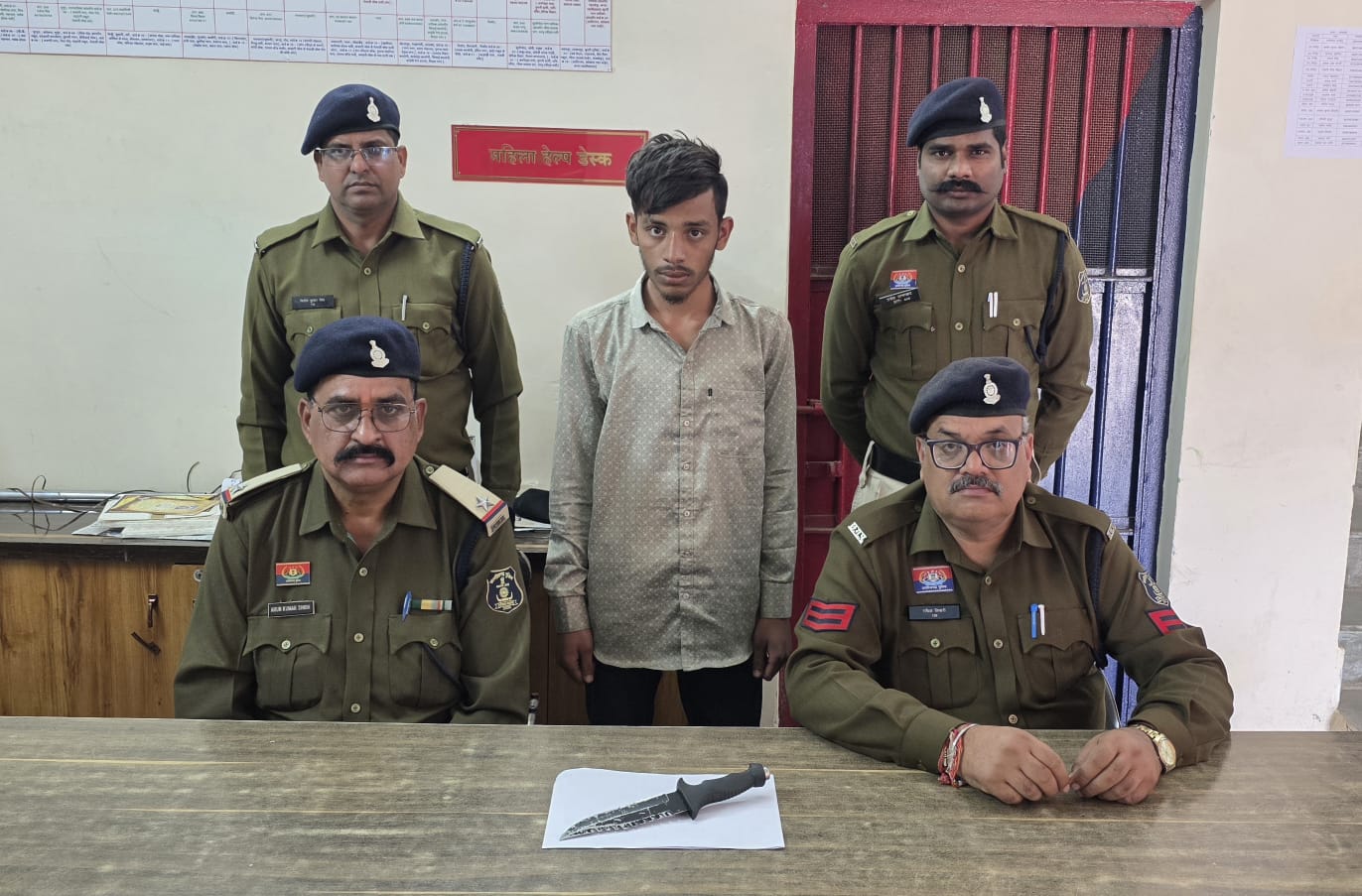 धारदार चाकू दिखाकर लगातार कर रहा था पैसे की मांग पुलिस टीम के द्वारा रिपोर्ट के चंद घंटे में आरोपी को घेराबंदी कर पकड़ा गया आरोपी के कब्जे से 01 नग चाकू किया गया जप्त।