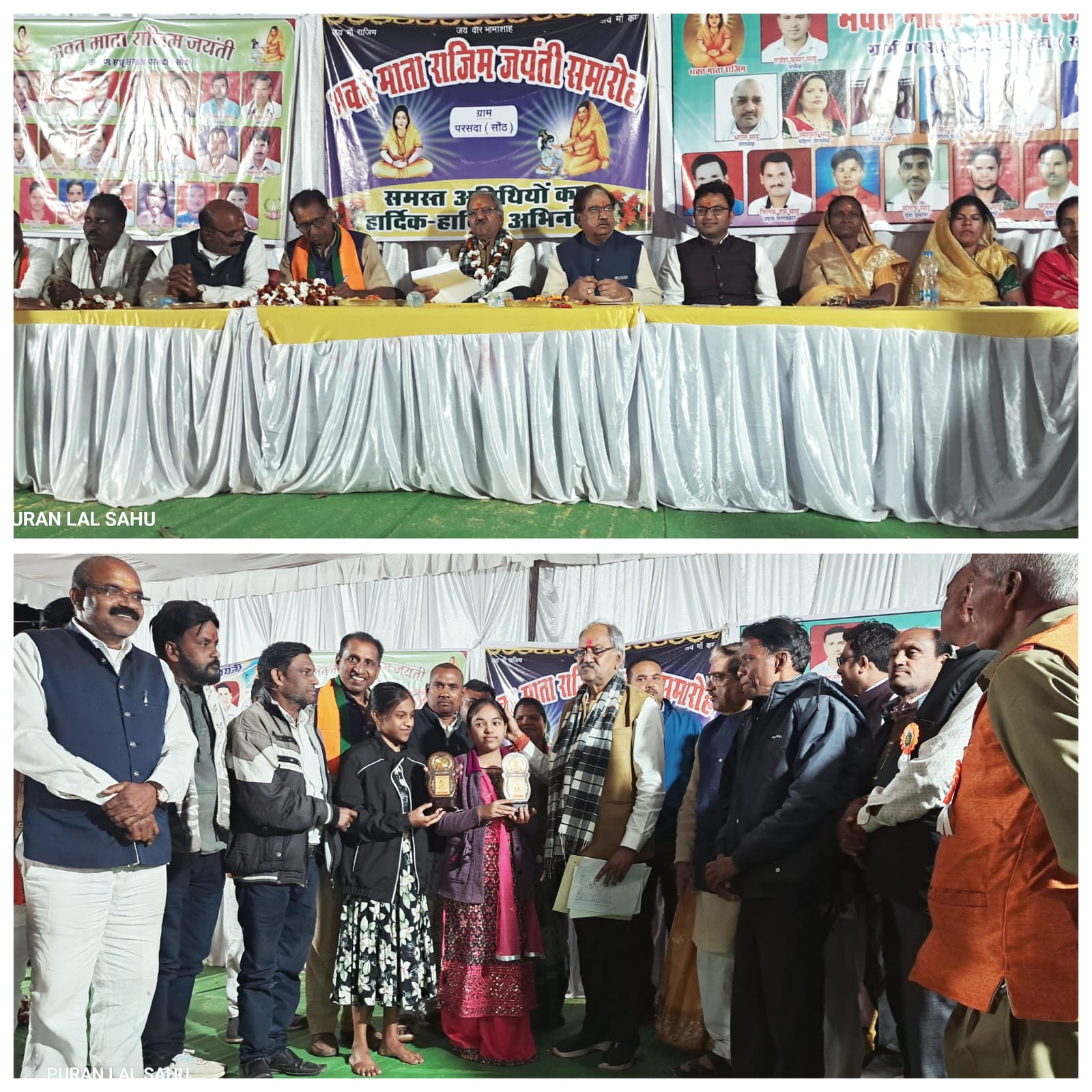 नवापारा राजिम:– समीपस्थ ग्राम परसदा में प्रति वर्षानुसार इस वर्ष भी भक्त माता राजिम जयंती हर्षोल्लास के साथ मनाया गया. इस कार्यक्रम का शुभारंभ स्वजातीय बंधुओ के द्वारा माता कर्मा की पूजा अर्चना के साथ किया गया.तत्पश्चात भव्य कलश यात्रा निकाली गई जिसे समाज की युवतियां एवं महिलाओं ने सर पर कलश धारण कर साहू समाज भवन से निकलकर बाजार चौक, भाटापारा, घासीदास चौक, गायत्री चौक गौरा चौक, शीतला चौक से भ्रमण करते हुए वापस साहू समाज भवन में पहुंची. इस अवसर पर बृजमोहन अग्रवाल (सांसद रायपुर लोकसभा) ने कहा कि साहू समाज एक विस्तृत समाज है. माता राजिम का जीवन त्याग तपस्या और प्रभु की सेवा करना रहा है.माता राजिम त्याग, तपस्या एवं भक्ति की प्रतिमूर्ति थी.अतःसभी स्वजातीय बन्धुओ को माता राजिम के द्वारा दिखाए गए मार्ग का अनुसरण करना चाहिए.अशोक बजाज भाजपा प्रदेश कार्यालय मंत्री ने कहा कि साहू समाज एक मेहनत कश समाज है. साहू समाज में महान विभूति की कमी नहीं है उन्होंने माता राजिम के महिमा का वर्णन करते हुए कहा कि पद्मावती पुरी क्षेत्र मध्य भारत के एकमात्र तीर्थ स्थान है. एकता में बड़ी ताकत होती है ऐसे मौके पर सामूहिक एकजुटता बहुत जरूरी है.प्रवीण साहू (कांग्रेस नेता) ने कहा कि भक्त माता राजिम ने अपने भक्ति के बल पर भगवान को अपने भक्ति की डोर में बांधकर भक्ति भाव का परिचय दिया.हम सभी माता राजिम के त्याग, तपस्या एवं बलिदान को ग्रहण करते हुए मर्यादित जीवन जीने का प्रयास करना चाहिए.तुलेश साहू अध्यक्ष तहसील साहू संघ ने कहा कि माता राजिम से हमें त्याग और धार्मिकता की शिक्षा मिलती है.रतीराम साहू (भाजपा नेता) ने कहा कि भक्ति में लीन माता राजिम भगवान विष्णु की उपासक थी.अपना पूरा जीवन सामाजिक और धार्मिक कार्य में समर्पित किया. माता राजिम ने भक्ति की शक्ति से भक्तों में शिरोमणि का स्थान प्राप्त कर तैलिक वंश का मान बढ़ाया है.परदेशी राम साहू जिलाध्यक्ष किसान मोर्चा ने समाज के लोगों से कहा कि जीवन में संस्कार का बहुत महत्व है.हमें अपने माता पिता एवं बड़े बुजुर्गो का हमेशा सम्मान करना चाहिए.गैंदलाल साहू अध्यक्ष परिक्षेत्र साहू समाज चम्पारण ने कहा कि नशा नाश की जड़ है. नशापान से शारीरिक, मानसिक एवं बौद्धिक शक्ति का विघटन होता है. अतः नशापान से लोगों को दूर रहना चाहिए. पारसमणी अध्यक्ष साहू समाज पिपरौद ने कहा कि एकता में बड़ी ताकत होती है ऐसे मौके पर सामूहिक एकजुटता बहुत जरूरी है. ग्रामीण साहू समाज की मांग पर बृजमोहन अग्रवाल सांसद ने पेवर ब्लॉक के लिए 5 लाख देने की घोषणा की. वहीं जिला पंचायत सदस्य चंद्रकला ध्रुव ने साहू समाज भवन के लिए टीन शेड निर्माण हेतु पाँच लाख एवं चित्ररेखा दीपक तारक ने नल एवं बोर हेतु एक लाख पचास 
