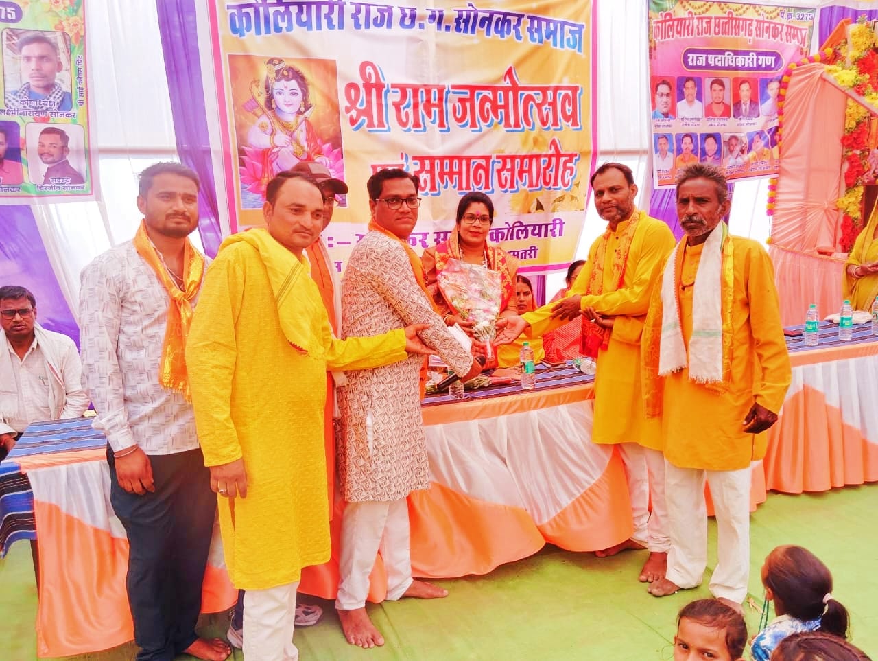 कोलियारी/धमतरी – छत्तीसगढ़ सोनकर समाज राज इकाई कोलियारी के तत्वाधान में दिनांक 27 मार्च 2026 दिन शुक्रवार को आराध्य देव भगवान श्री रामचंद्र जी के जन्मोत्सव के शुभ अवसर पर शोभा यात्रा एवं सम्मान समारोह का आयोजन किया गया। इस कार्यक्रम में मुख्य अतिथि के रूप में श्रीमती मोनिका ऋषभ देवांगन सभापति महिला एवं बाल विकास विभाग जिला पंचायत धमतरी, अध्यक्षता मुकेश कुमार सोनकर अध्यक्ष सोनकर समाज कोलियारी, अति विशिष्ट अतिथि श्रीमती अनीता मुकेश यादव जनपद सदस्य जनपद पंचायत धमतरी, विशिष्ट अतिथि श्रीमती ज्योति सोनकर सरपंच ग्राम पंचायत कोलियारी, प्रकाश चंद सोनकर इंजीनियर व समाजसेवी, शत्रुघ्न सोनकर, श्रीमती दुलारी सोनकर, राकेश सोनकर, गोविंद सोनकर, रुद्रेश्वर सोनकर, अभय सोनकर, अजय सोनकर, ऋषि सोनकर एवं समस्त सोनकर समाज कोलियारी ने गरिमामयी उपस्थिति प्रदान की।