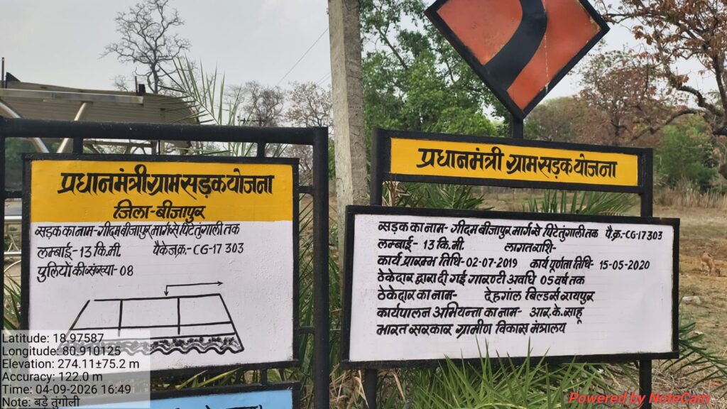 बीजापुर के पिटे – तुंगोली की सड़क कागजों में 13 KM , जमीनी हकीकत 5 KM! , 8 पुलिये भी गायब