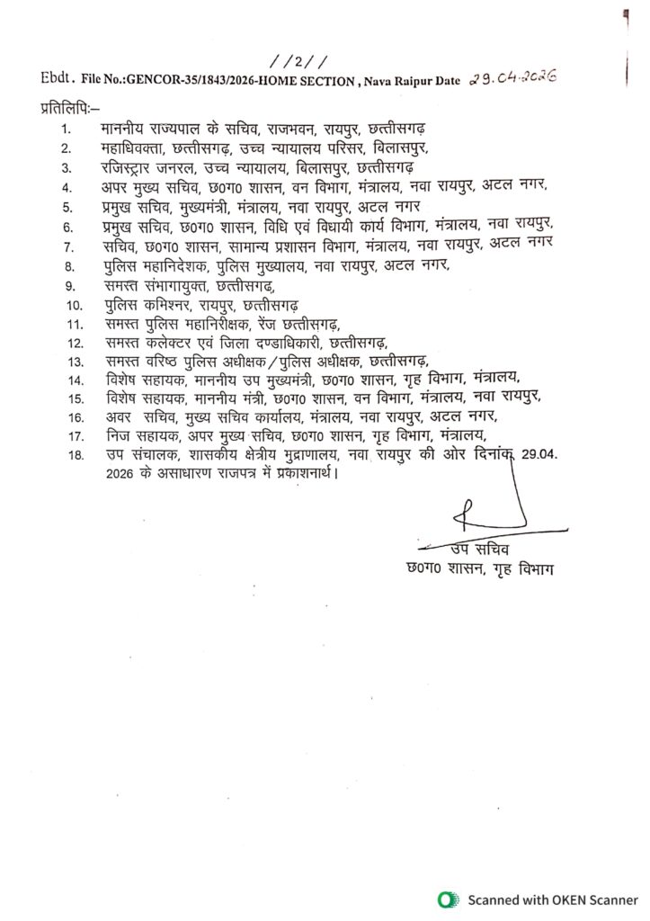 यह आदेश छत्तीसगढ़ अत्यावश्यक सेवा संधारण तथा विच्छिन्नता निवारण अधिनियम, 1979 के तहत जारी किया गया है। इसके तहत—