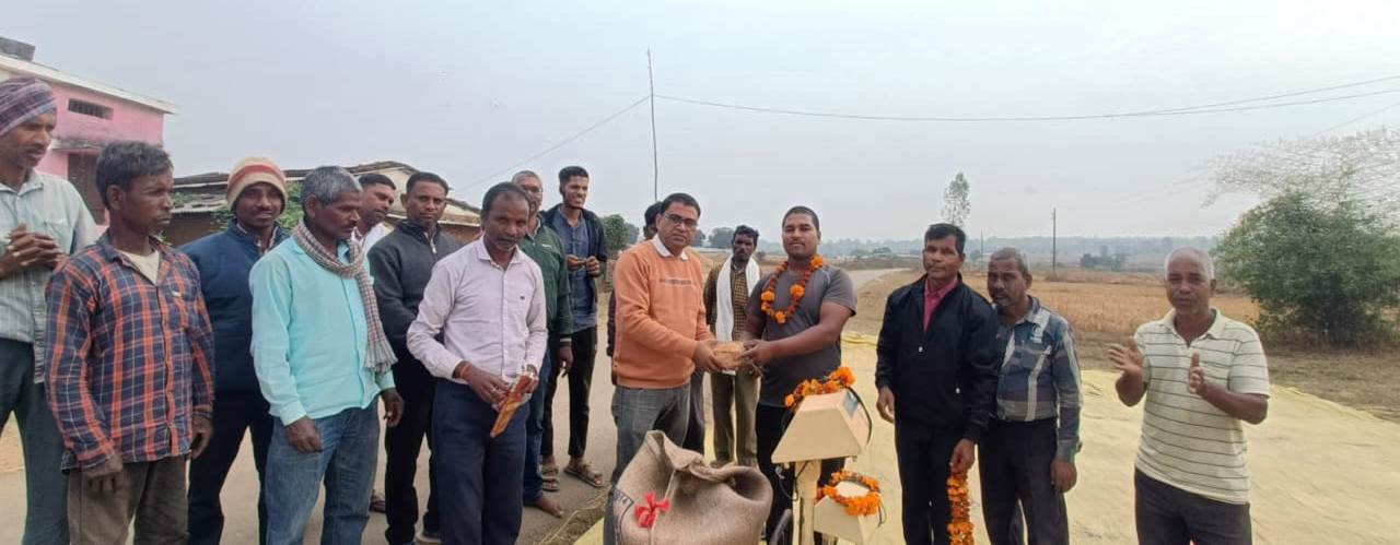 मनेन्द्रगढ़ :- साल के आखिरी महीने के पहले दिन 01 दिसम्बर 2023 को मनेन्द्रगढ़ विकासखण्ड के धान उपार्जन केन्द्र ग्राम घुटरा में धान खरीदी का शुभारंभ किया गया। जिला मुख्यालय से नियुक्त नोडल अधिकारी उमेश कुमार पाण्डेय ने कृषक आदित्य राय का श्रीफल एवं फूलमाला से धान उपार्जन केन्द्र में स्वागत किया। इस दौरान सहायक नोडल अधिकारी रामबदन सिंह एवं प्रभारी दिलीप पटेल के द्वारा घुटरा में धान खरीद हेतु कुल 03 टोकन जारी किया गया था।