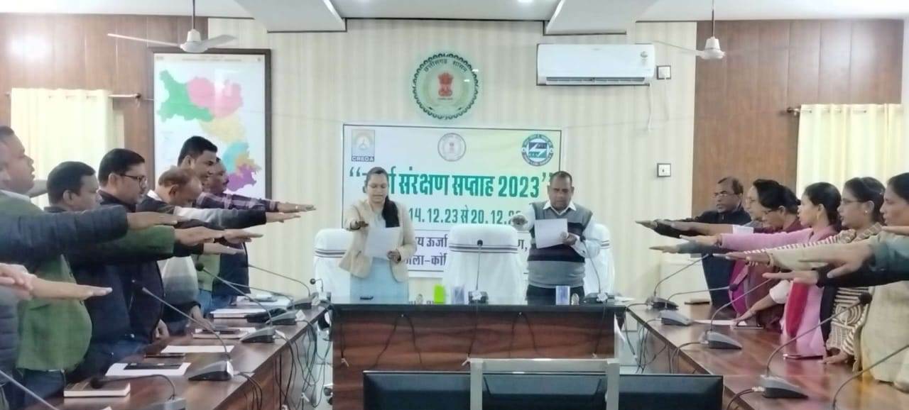 मनेन्द्रगढ़ :- कलेक्टर नरेंद्र कुमार दुग्गा के निर्देशानुसार कलेक्टर सभा कक्ष में संयुक्त कलेक्टर सी.एस.पैकरा तथा एसडीएम अभिलाषा पैकरा ने जिला कार्यालय के समस्त अधिकारियों एवं कर्मचारियों को उर्जा संरक्षण संकल्प दिलाया। ऊर्जा संरक्षण दिवस पर समस्त अधिकारियों एवं कर्मचारियों ने संकल्प लेते हुए कहा कि हम ऊर्जा का अपव्यय रोकेंगे एवं अन्य लोगों को भी ऊर्जा अपव्यय रोकने हेतु जागरूक करेंगे। हम ऊर्जा संरक्षण हेतु ऊर्जा दक्ष विद्युत उपकरणों के उपभोग हेतु जागरूक करेंगे। हम सौर संयंत्रों का उपयोग करेंगे तथा अन्य लोगों को भी उपयोग हेतु जागरूक करेंगे। हम जल का अपव्यय रोकेंगे तथा लोगों को इस हेतु जागरूक करेंगे। हम पर्यावरण संरक्षण हेतु पेड़ों को कटने से रोकेंगे तथा वृक्षारोपण करेंगे। आदर्श नागरिक होने के नाते हम ऊर्जा पर्यावरण एवं जल संरक्षण हेतु लोगों को जागरूक करेंगे, ताकि आगे आने वाली पीढ़ी के लिये एक बेहतर वातावरण सुनिश्चित हो सके। एक नये व स्वच्छ भारत का निर्माण कर सकें। बताते चले कि प्रकृति में संसाधन सीमित मात्रा में होते हैं। दूसरे शब्दों में, प्रकृति में उपलब्ध ऊर्जा भी सीमित मात्रा में होती है। विश्व में जितनी अधिक जनसंख्या बढ़ रही है, उसके साथ-साथ उन सब की आवश्यकताएँ भी बढ़ती ही जा रही है। सभी प्रकार की मशीनों के संचालन के लिए ऊर्जा की बहुत आवश्कता होती है परंतु जिस गति से ऊर्जा की जरूरत बढ़ रही है। उसको देखते हुए ऊर्जा के सभी संसाधनों को नष्ट करने की आशंका बढ़ने लगी है। खासकर ऊर्जा के उन सभी साधनों को जिन्हें हम पुनः निर्मित नहीं कर सकते है, जैसे पेट्रोल, डीजल, कोयला और खाना पकाने की गैस आदि। अतः यह जरूरत के अनुसार हम ऊर्जा संरक्षण की ओर विशेष ध्यान दे सकते है क्योंकि यदि समय रहते हम अपने प्रयास करने में सफल नहीं हुए तो सम्पूर्ण विश्व के लोग खतरे में पड़ सकते है। ऊर्जा संरक्षण महत्वपूर्ण भूमिका निभाता है क्योंकि गैर-नवीकरणीय संसाधनों का उपयोग करने से हमारे पर्यावरण पर बहुत प्रभाव पड़ता है। विशेष तौर पर कार्बन डाइऑक्साइड जैसे वायु और जल प्रदूषण के लिए जीवाश्म ईंधन की आपूर्ति का उत्पादन किया जाता है और बिजली, स्टेशनों में हीटिंग सिस्टम और कारों के इंजनों में तेल और कोयला, गैस का उपयोग बहुत अधिक मात्रा में होने लगा है। ऐसी स्थिति में यहाँ पर भारत को विकसित करने के लिए और ऊर्जा की मांग में बढ़ोतरी के कारण इससे निपटने की बहुत कोशिश करना है। नवीन स्रोतों को विकसित करने के लिये इनके महत्व को समझाना जरूरी होता है। सभी देशों में सौर-ऊर्जा को अधिक महत्व दिया जा रहा है तथा इसको और अधिक मात्रा मे उपयोगी बनाने के लिये इसके विकास के लिये विश्व भर के सभी वैज्ञानिकों द्वारा 