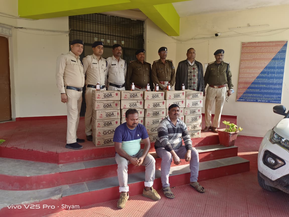 एवं एजाज खान पिता स्व. अब्दुल रहमान उम्र 30 वर्ष सा. बहेराडीह थाना लुण्ड्रा जिला सरगुजा (छ.ग.)को विधिवत गिरफ्तार कर उनके विरूद्ध अप. क. 42/2024 धारा 34(2) आब.एक्ट पंजीबद्ध कर रिमाण्ड पर भेजा गया। संपूर्ण कार्यवाही में थाना प्रभारी खड़गवां आर एन गुप्ता,उप निरीक्षक राजेंद्र सिंह, प्रधान आरक्षक रघुनंदन सिंह, विनय श्याम का विशेष योगदान रहा।