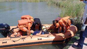 स्कूली विद्यार्थियों को सीख देने एनडीआरएफ ने तालाब में कराया आपदा मॉकड्रिल।