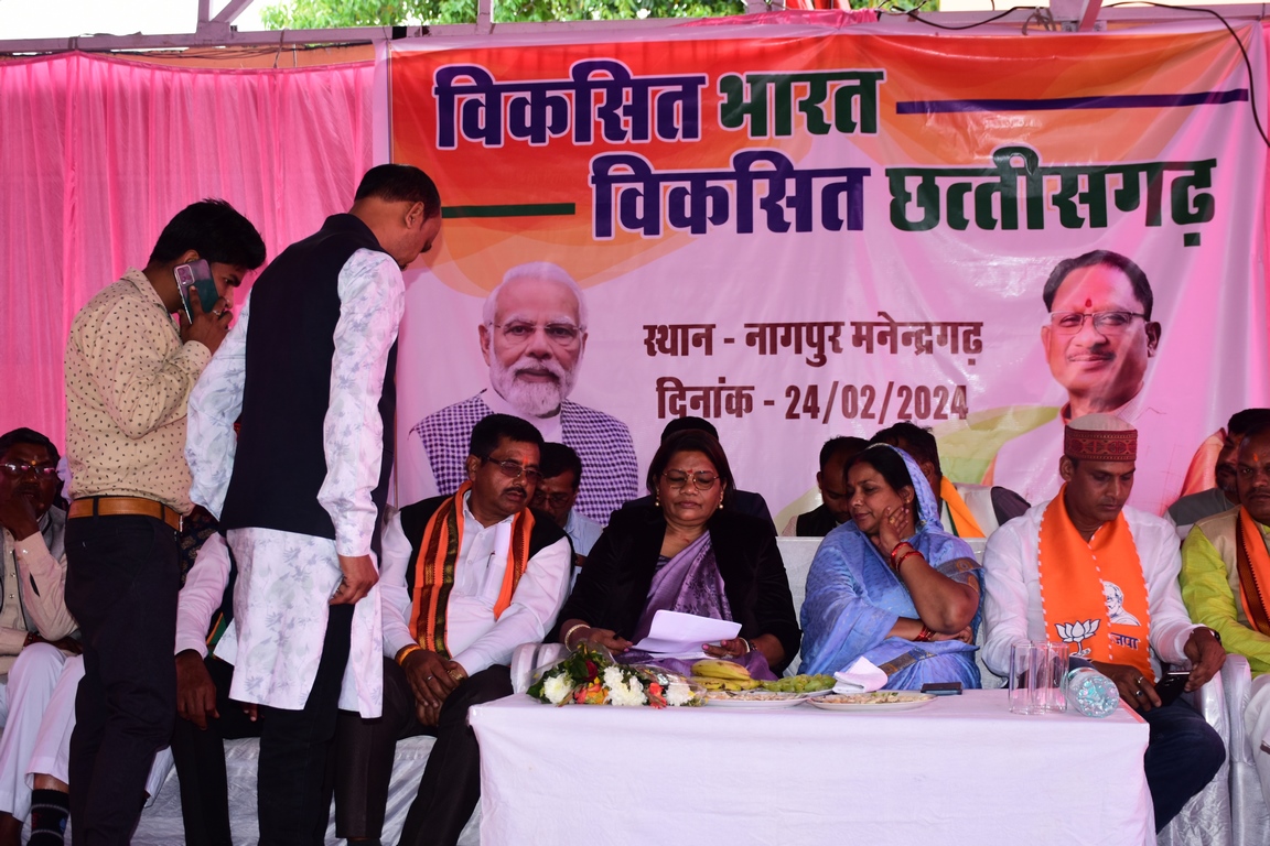 मनेन्द्रगढ़ :- क्षेत्र की जनता ने जिस उम्मीद के साथ मुझे चुना है मैं उन उम्मीदों पर खरा उतरूंगी। मैंने जनता से जो जो वायदे किये है उसे पूरा करने मैं आई हूं। प्रदेश में मोदी की गारंटी और विष्णु का सुशासन चल रहा है। मोदी की गारंटी मतलब गारंटी पूरा होने की गारंटी है।यह बातें पूर्व केंद्रीय राज्यमंत्री व भरतपुर सोनहत विधायक रेणुका सिंह ने विकसित भारत संकल्प यात्रा के तहत शनिवार को नागपुर ग्राम पंचायत के राम लीला मैदान में विकसित भारत विकसित छत्तीसगढ़ कार्यक्रम में ग्रामीणों को संबोधित करते हुए कही।विधायक रेणुका सिंह ने कहा कि, प्रधानमंत्री नरेंद्र मोदी ने अपने उद्बोधन में कहा कि अगर आज भी कांग्रेस की सरकार होती तो हितग्राहियों को 1 रुपये में से 15 पैसे पहुंचते। रेणुका सिंह ने बताया यह प्रधानमंत्री नरेंद्र मोदी की ही देन है कि आज (डीबीटी) डायरेक्ट बेनिफिसरी ट्रांसफर के जरिये प्रत्येक हितग्राहियों को सीधे उनके खाते में पैसा प्राप्त हो रहा है। मोदी के कारण हितग्राहियों को एक एक पाई मिल रही है। विधायक ने कहा कि केन्द्र सरकार की जनहितकारी योजनाओं का लाभ जरूरतमंद लोगों तक पहुंचाने के उद्देश्य से विकसित भारत संकल्प यात्रा का आयोजन सभी पंचायतों में किया गया।