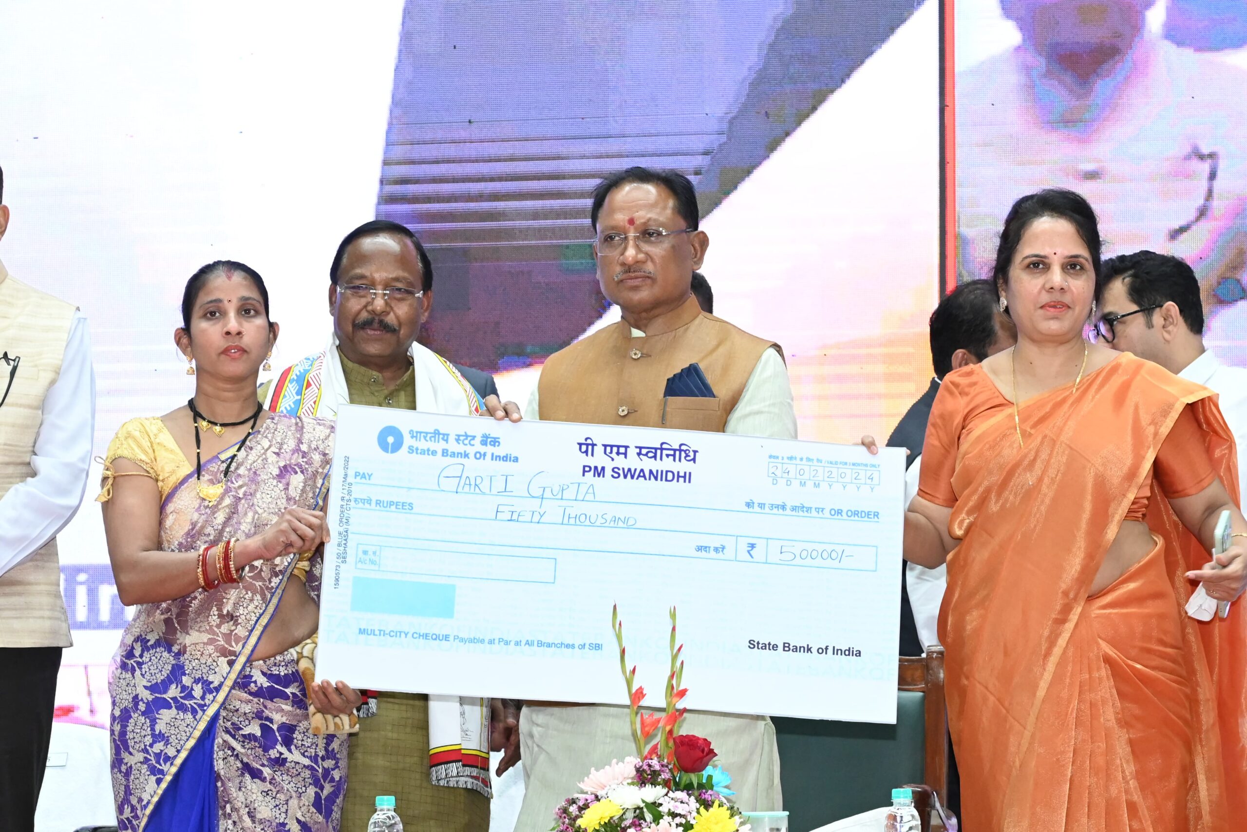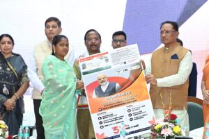 रायपुर :- विकसित भारत, विकसित छत्तीसगढ़ कार्यक्रम राजधानी के बूढ़ापारा स्थित इंडोर स्टेडियम में आयोजित हुआ। इसमें मुख्यमंत्री विष्णुदेव साय ने हितग्राहियों को विभिन्न योजनाओं से लाभान्वित करते हुए प्रमाण-पत्र सौंपा। इन हितग्राहियों ने प्रधानमंत्री नरेंद्र मोदी और मुख्यमंत्री विष्णुदेव साय को धन्यवाद दिया और आम नागरिकों से भी शासन की योजना का लाभ लेने के लिए आग्रह किया।