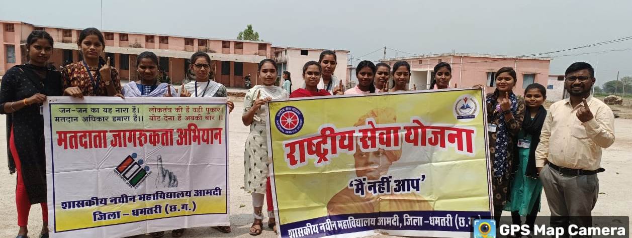 धमतरी :- कलेक्टर एवं जिला निर्वाचन अधिकारी सुश्री नम्रता गांधी के निर्देश पर जिले में आगामी लोकसभा निर्वाचन 2024 के मद्देनजर मतदाता जागरूका कार्यक्रम चलाया जा रहा है। इसी कड़ी में बाबू छोटे लाल श्रीवास्तव शासकीय स्नातकोत्तर महाविद्यालय धमतरी में परीक्षा उपरांत महाविद्यालय परिसर से बाहर निकलते युवा मतदाताओं (रेगुलर व प्राइवेट) को लोकसभा चुनाव में शत-प्रतिशत मतदान के लिए अपील की गई। प्राचार्य डॉ श्रीदेवी चौबे के मार्गदर्शन में महाविद्यालय की निर्वाचन साक्षरता क्लब के सदस्यों व कैम्पस एंबेसडर ने भागीदारी की। इसके साथ ही शासकीय नवीन महाविद्यालय आमदी में राष्ट्रीय सेवा योजना के स्वयं सेवकों तथा निर्वाचन साक्षरता क्लब के सदस्यों द्वारा मतदाता जागरूकता अभियान चलाया गया।