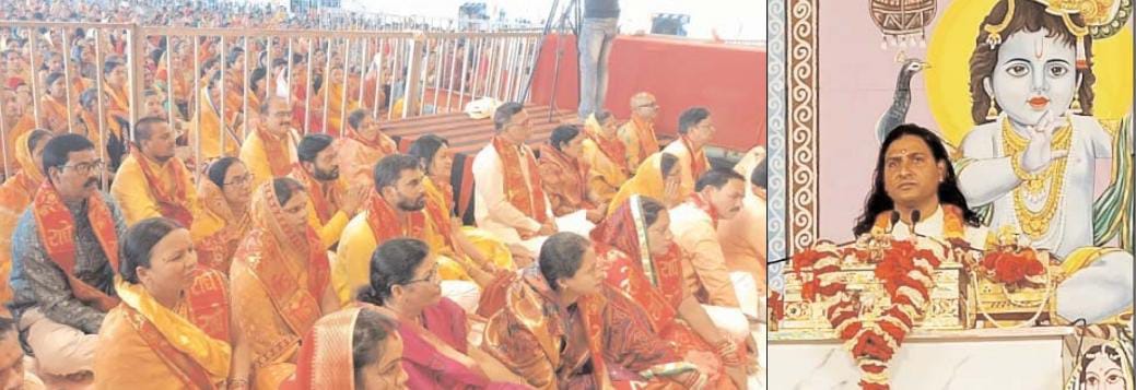 भागवत सुनने उमड़ रही लोगों की भीड़।