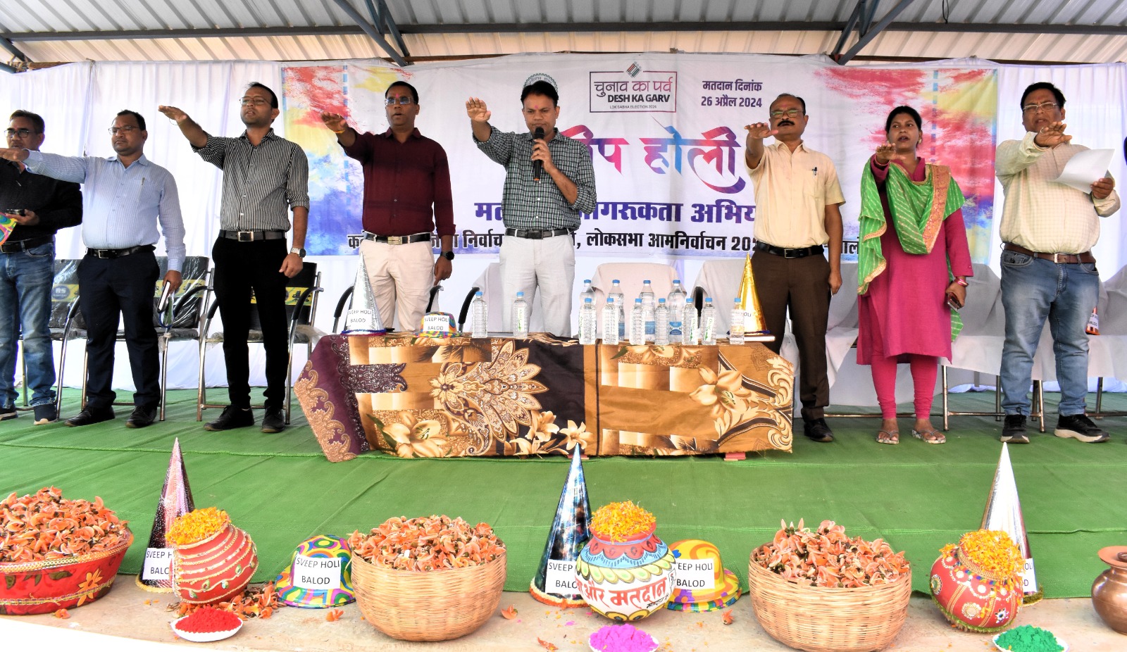 उन्होंने ग्रामीणों एवं मतदाताओं के साथ पूरी आत्मीय भाव के साथ होली खेलकर यह संदेश देने का प्रयास किया कि आज जिस अपनापन एवं आत्मीय भाव के साथ हम होली का आनंदोत्सव मना रहे हैं। उसी आत्मीय भाव और अपनी जिम्मेदारियों को समझते हुए मतदान तिथि 26 अपै्रल को अनिवार्य रूप से अपने मताधिकार का प्रयोग करें। ग्राम बड़गांव में जिला प्रशासन द्वारा आयोजित स्वीप होली का बेहतरीन आयोजन अत्यंत रोमांचकारी नजर आ रहा था। कार्यक्रम में महिलाएं गोपिकाओं के प्रतीक के रूप में मतदाता जागरूकता के संदेश पर आधारित रंगारंग सांस्कृतिक कार्यक्रमों की प्रस्तुति के अलावा पलाश के फूल की वर्षा कर अतिथियों एवं कार्यक्रम में उपस्थित लोगों का स्वागत किया।