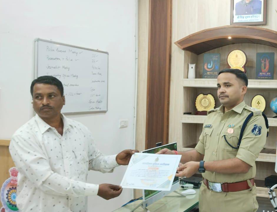 उक्त कार्यवाही में सुरेश प्रजापति की सक्रियता ने एक बड़ी अनहोनी होने से रोक दिया। जिस पर पुलिस अधीक्षक कोरिया ने बच्चों की बरामदगी के लिए सूचना देने वाले सजग जिम्मेदार नागरिक को पुलिस अधीक्षक कार्यालय बुलाकर सम्मानित करने को कहा था।जिसके फलस्वरूप बुधवार दिनांक 03.04.2024 को पुलिस अधीक्षक कोरिया सूरज सिंह परिहार ने सुरेश प्रजापति आ. बुधराम निवासी ग्राम पोड़ी बचरा को पुलिस अधीक्षक कक्ष में प्रशस्ति पत्र देकर सम्मानित किया है।