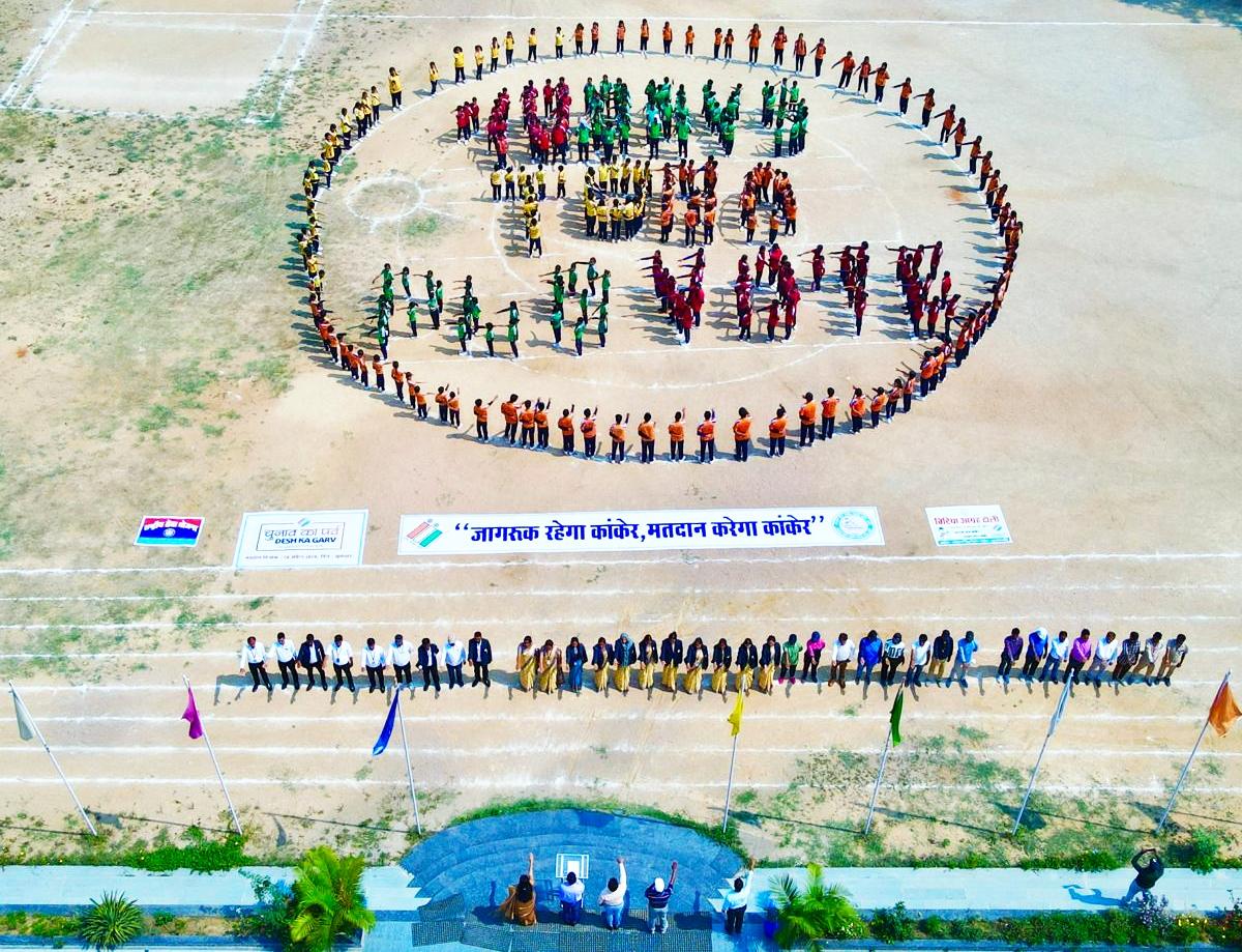 उत्तर बस्तर कांकेर :- कलेक्टर एवं जिला निर्वाचन अधिकारी अभिजीत सिंह के निर्देश पर और जिला पंचायत सीईओ एवं स्वीप के नोडल अधिकारी सुमित अग्रवाल के मार्गदर्शन में विभिन्न गतिविधियों के माध्यम से मतदाता जागरूकता अभियान चलाया जा रहा है। इसी क्रम में आज ईमलीपारा स्थित एक विद्यालय के लगभग 700 विद्यार्थियों ने मानव श्रृंखला बनाकर ‘‘10 डेज टू गो प्लीज वोट’’ लिखकर मतदाताओं से शत-प्रतिशत वोट करने की अपील की। कार्यक्रम में जिला शिक्षा अधिकारी अशोक पटेल ने विद्यालय स्टाफ के साथ व्यायाम शिक्षक एवं अन्य कर्मचारियों को शपथ दिलाई। उन्होंने विद्यार्थियों से अपने पालक एवं अन्य मतदाताओं को लोकसभा चुनाव में स्वतंत्र, निष्पक्ष एवं शत-प्रतिशत मतदान करने के लिये प्रेरित करने का आह्वान किया। इस अवसर पर सहायक जिला क्रीड़ा अधिकारी श्री आबिद खान सहित विद्यालय की प्राचार्य तथा बड़ी संख्या में छात्र-छात्राएं उपस्थित थे।