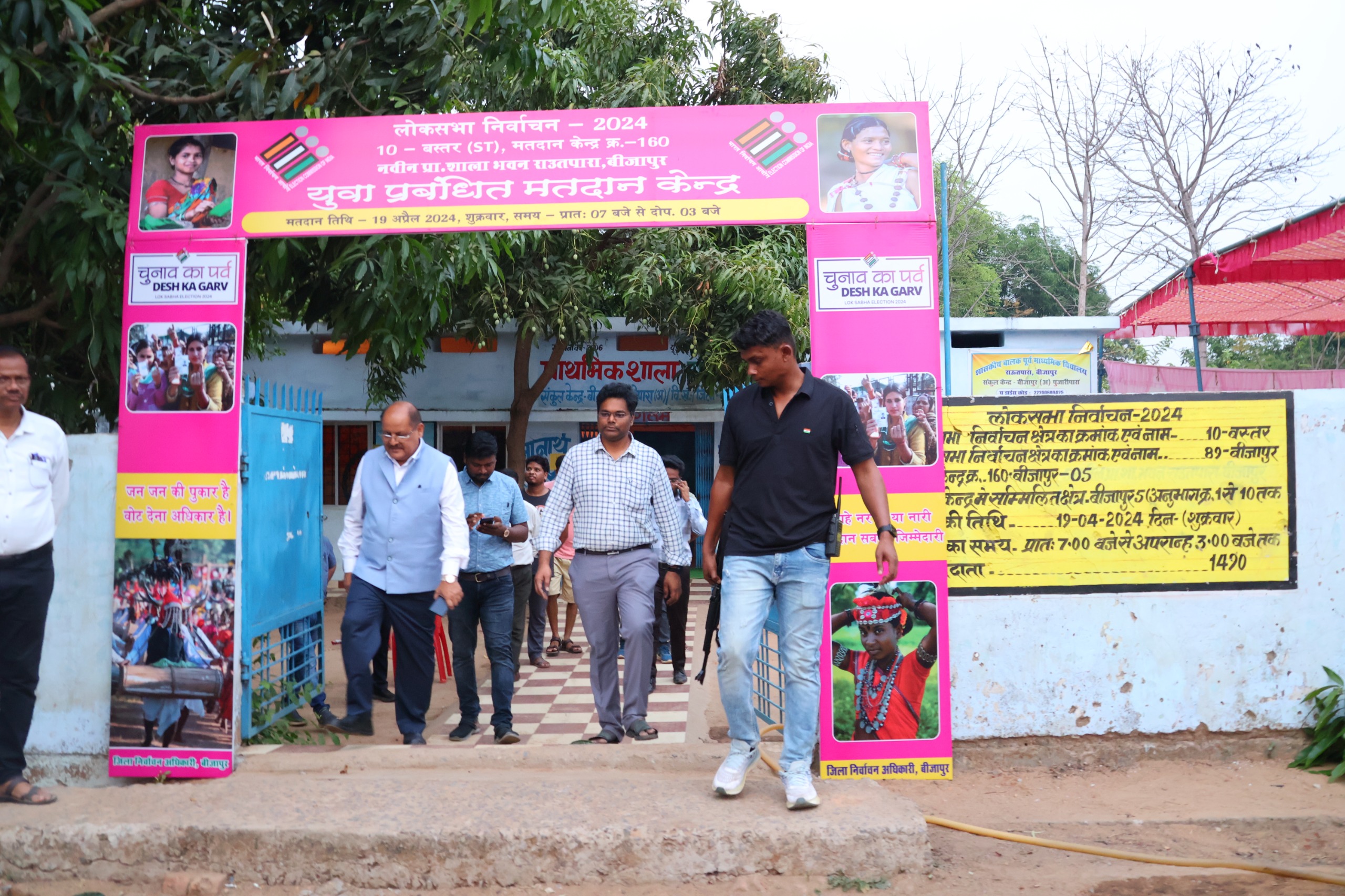 बीजापुर – बीजापुर जिला वन परिक्षेत्र होने के कारण आदर्श मतदान केंद्र को “पच्चटद वोटवाटड” की थीम में सजाया गया है। यह एक गोंडी शब्द है जिसका शाब्दिक अर्थ ग्रीन वोट देना होता है। प्राकृतिक सौंदर्य और बांस शिल्प कला और ताड़ी और सल्फी के पेड़ की पत्तियों के छांव के बीच मतदाताओं को भरी गर्मी में भी शीतलता का एहसास होगा ।