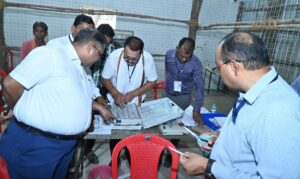 जिले के दोनों विधानसभा क्षेत्रों में 14-14 टेबल लगाकर मतदान के लिए इलेक्ट्रानिक वोटिंग मशीन की कमिशनिंग कार्य किया जा रहा हैं। इसके माध्यम से बीयू में बैलेट पेपर लगाएं गए और पिंक पेपर से सील किया गया। व्हीव्हीपैट में ईसीआईएल के इंजिनियरों के माध्यम से सिंबॉल लोडिंग का कार्य किया गया। सभी बीयू, सीयू और व्हीव्हीपैट का सिलिंग कार्य किया जा रहा है। महासमुन्द संसदीय क्षेत्र में कुल 17 अभ्यर्थी एवं नोटा 01 कुल 18 है। विधानसभा क्षेत्र राजिम के 274 मतदान केन्द्र हैं। इन मतदान केन्द्रों के लिए 662 बैलेट यूनिट, 331 कंट्रोल यूनिट तथा 383 रिजर्व सहित व्हीव्हीपैट को सुरक्षित रखा गया है। विधानसभा क्षेत्र बिन्द्रानवागढ़ में कुल मतदान केन्द्रों की संख्या 299 हैं। इन मतदान केन्द्रों के लिए बैलेट यूनिट 722, कंट्रोल यूनिट 361 और व्हीव्हीपैट 418 रिजर्व सहित सुरक्षित रखा गया है। इस दौरान अपर कलेक्टर अरविन्द पाण्डेय, उप जिला निर्वाचन अधिकारी राकेश कुमार गोलछा, सहायक रिटर्निंग ऑफिसर राजिम श्रीमती अर्पिता पाठक, सहायक रिटर्निंग ऑफिसर बिन्द्रानवागढ़ हितेश पिस्दा एवं सेक्टर आफिसर एवं कमीशनिंग कार्य में लगे अधिकारी-कर्मचारी उपस्थित थे। उल्लेखनीय है कि महासमुन्द संसदीय क्षेत्र में गरियाबंद जिले के राजिम एवं बिन्द्रानवागढ़ विधानसभा निर्वाचन आगामी 26 अप्रैल को मतदान होगा।