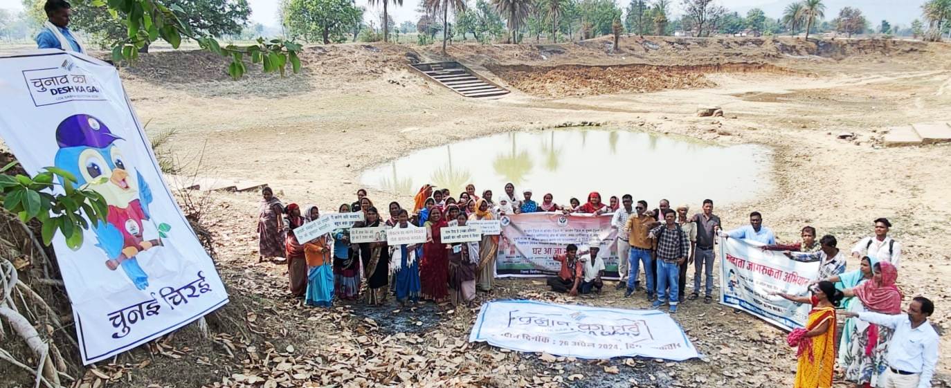 उत्तर बस्तर कांकेर :- लोकसभा निर्वाचन-2024 के अंतर्गत दूसरे चरण में कांकेर लोकसभा क्षेत्र का मतदान 26 अप्रैल 2024 को सम्पन्न होना है। कलेक्टर एवं जिला निर्वाचन अधिकारी अभिजीत सिंह के मार्गदर्शन में मतदाता जागरूकता अभियान (स्वीप) के तहत जिले से पलायन कर दूसरे शहर में निवासरत तथा राज्य से बाहर गए मतदाताओं के लिए विशेष अभियान “घर आजा संगी“ प्रारंभ किया गया है। इस अभियान के तहत आज ग्राम नन्दनमारा के छोटेपारा में मनरेगा कार्य स्थल पर श्रमिकों द्वारा घर से बाहर रह रहे मजदूरों को अपने घर आकर शत-प्रतिशत मतदान करने का आग्रह किया गया। साथ ही जनपद पंचायत सीईओ अश्वनी यादव द्वारा समस्त श्रमिकों को मतदान की शपथ भी दिलाई गई।