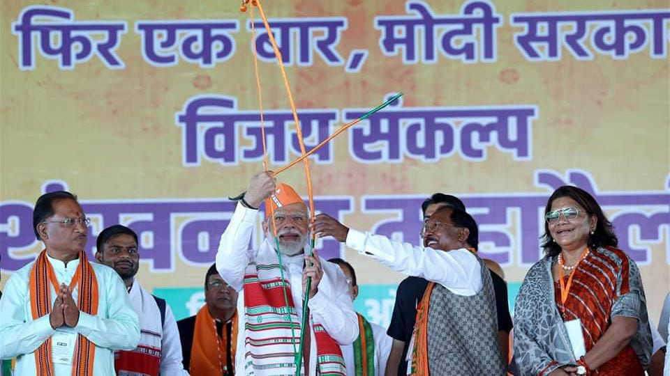 विजय संकल्प शंखनाद रैली को जब प्रदेश के मुख्यमंत्री विष्णुदेव साय संबोधित कर रहे थे, तब मंच पर प्रधानमंत्री नरेंद्र मोदी बैठे थे इस दौरान प्रधानमंत्री नरेंद्र मोदी से कुछ दूरी पर बैठी विधायक रेणुका सिंह को नरेंद्र मोदी ने बुलाया और मुख्यमंत्री विष्णुदेव साय जिस कुर्सी पर बैठे थे