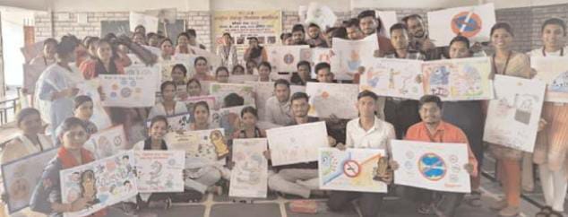 महासमुंद – श्याम बालाजी महाविद्यालय में राष्ट्रीय तम्बाखू नियंत्रण कार्यक्रम अंतर्गत विश्व तंबाकू निषेध दिवस मनाया गया। इस वर्ष का थीम तंबाकू उद्योग के हस्तक्षेप से बच्चो को बचाना है। इस विषय को ध्यान में रखते हुए मुख्य चिकित्सा एवं स्वास्थ्य अधिकारी डॉ पी कुदेशिया के निर्देशन, डीपीएम श्रीमती नीलू घृतलहरे के मार्गदर्शन व नोडल अधिकारी एन टी सी पी डॉक्टर छत्रपाल चंद्राकर के सहयोग से 31 मई विश्व तंबाकू निषेध दिवस मनाया गया। जिसके अंतर्गत श्याम बाला जी महाविद्यालय में नशा मुक्ति जागरुकता कार्यशाला एवं चित्रकला प्रतियोगिया का आयोजन किया गया। कार्यक्रम के आयोजन में श्रीमती मेघा ताम्रकार साइकोलॉजिस्ट, देव कुमार डडसेना; योगा ट्रेनर, अंकिता चंद्राकर प्राचार्य, श्रीमती उमा चौधरी, सहायक प्राध्यापक, निर्मल बंजारे सहायक प्राध्यापक, टोपलाल कुररे; सहायक प्राध्यापक एवं सभी विभाग के विभागाध्यक्ष उपस्थित थे। चित्रकला प्रतियोगिता में कुल 70 विद्यार्थियों ने बढ़ चढ़कर हिस्सा लिया। कार्यशाला में विद्यार्थियों को तम्बाकू सेवन से होने वाले दुष्प्रभाव के प्रति जागरूक किया गया। व जिला तम्बाकू नशा मुक्ति केंद्र के बारे में जानकारी दी गई साथ ही कोटपा एक्ट 2003 की धाराओं के बारे में जानकारी दी गई। तत्पश्चात प्रतियोगिता में भाग लिए सभी प्रतिभागियों को प्रमाण पत्र दिया गया एवम प्रथम द्वितीय तृतीय श्रेणी में आए छात्रों को शील्ड बैग व प्रमाण पत्र दिया गया। साथ ही शपथ ग्रहण व एंटी टोबैको मॉनिटर बनाया गया एवम आई ई सी वितरित की गई। प्रतियोगिता में प्रथम राजकुमारी भारती, द्वितीय यूनिका साहू, तृतीय बेदप्रकाश, चतुर्थ रोहित पटेल, पंचम रोहित पटेल, षष्ठ माया दीवान रही। अंत में महाविद्यालय के प्राचार्य ने अतिथियों का आभार व्यक्त किया गया।
