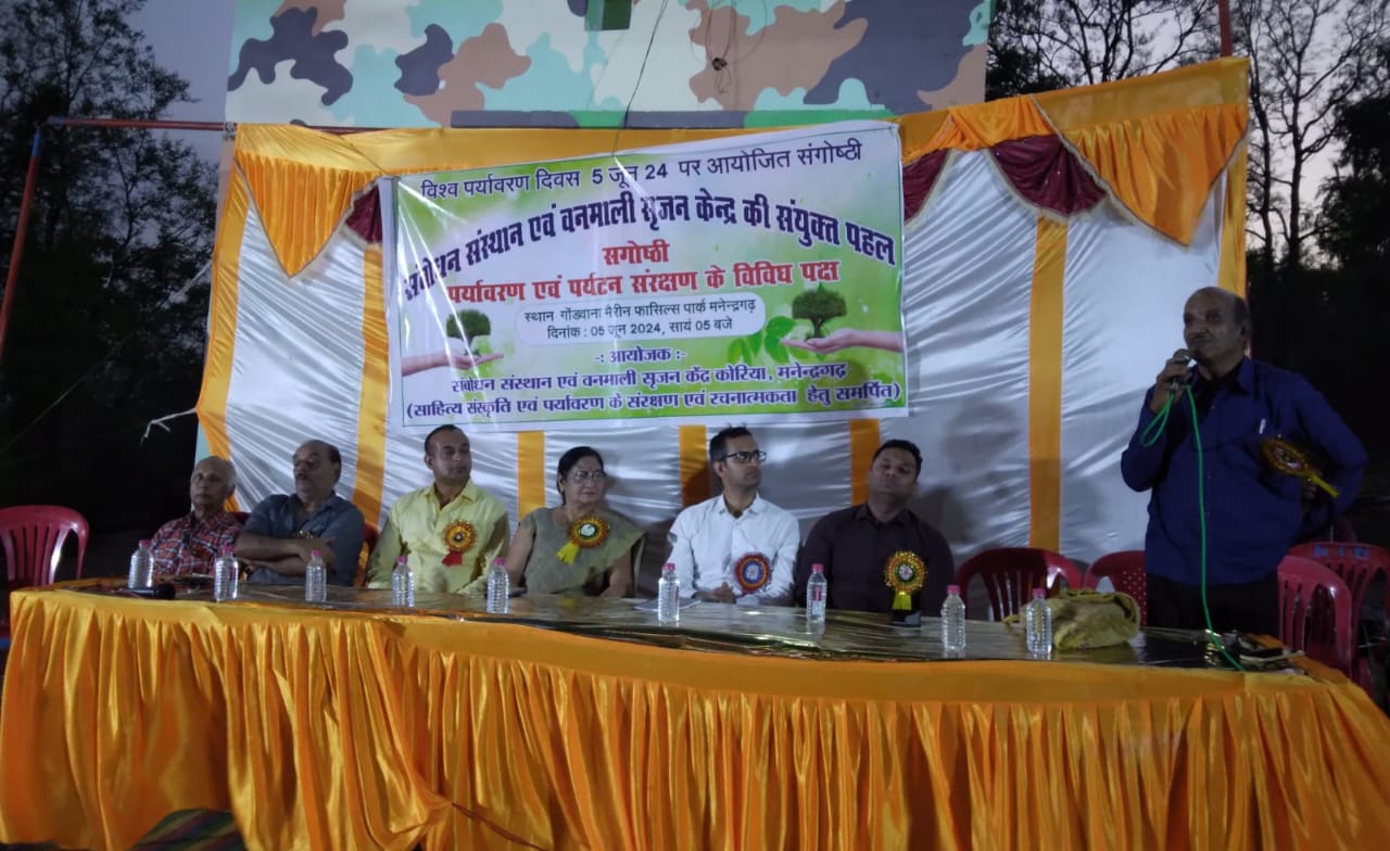 मनेंद्रगढ़/एमसीबी – ऋषियों ने प्रकृति पूजा में वट,पीपल और नीम जैसे पेड़ों की पूजा का विधान रख दिया था और माता, बहनों को उनकी पूजा के माध्यम से संतान की उन्नति का रास्ता बता कर पेड़ों की पूजा से जोड़ दिया,जो आज भी हमारी स्वस्थ संस्कृति की पहचान बन चुकी है। जिला पंचायत कोरिया के जन सम्पर्क अधिकारी एवं वरिष्ठ साहित्यकार श्री रूद्र नारायण मिश्र ने उक्ताशय के विचार फासिल्स पार्क में आयोजित पर्यावरण संगोष्ठी में व्यक्त किए।अतिथियों की उपस्थिति में वन माली सृजन केंद्र कोरिया के संयोजक वीरेंद्र श्रीवास्तव ने सबसे पहले विश्व पर्यावरण दिवस पर फासिल्स पार्क मनेन्द्रगढ़ में इस आयोजन की भूमिका प्रस्तुत करते हुए सायं 6.30 बजे संगोष्ठी का प्रारंभ किया।जिसे साहित्यकार गौरव अग्रवाल के कुशल संचालक ने कार्यक्रम को आगे बढ़ाया।