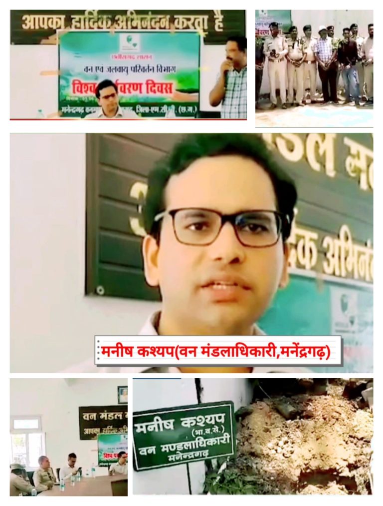 मनेंद्रगढ़/एमसीबी – हर वर्ष की भांति इस वर्ष भी 5 जून को विश्व पर्यावरण दिवस मनाया गया।मनेंद्रगढ़ वन मंडल के कार्यालय में वन विभाग के अधिकारी कर्मचारियों ने पौधारोपण करने के साथ ही नागरिकों को अधिक से अधिक संख्या में पौधारोपण करने का संदेश दिया।