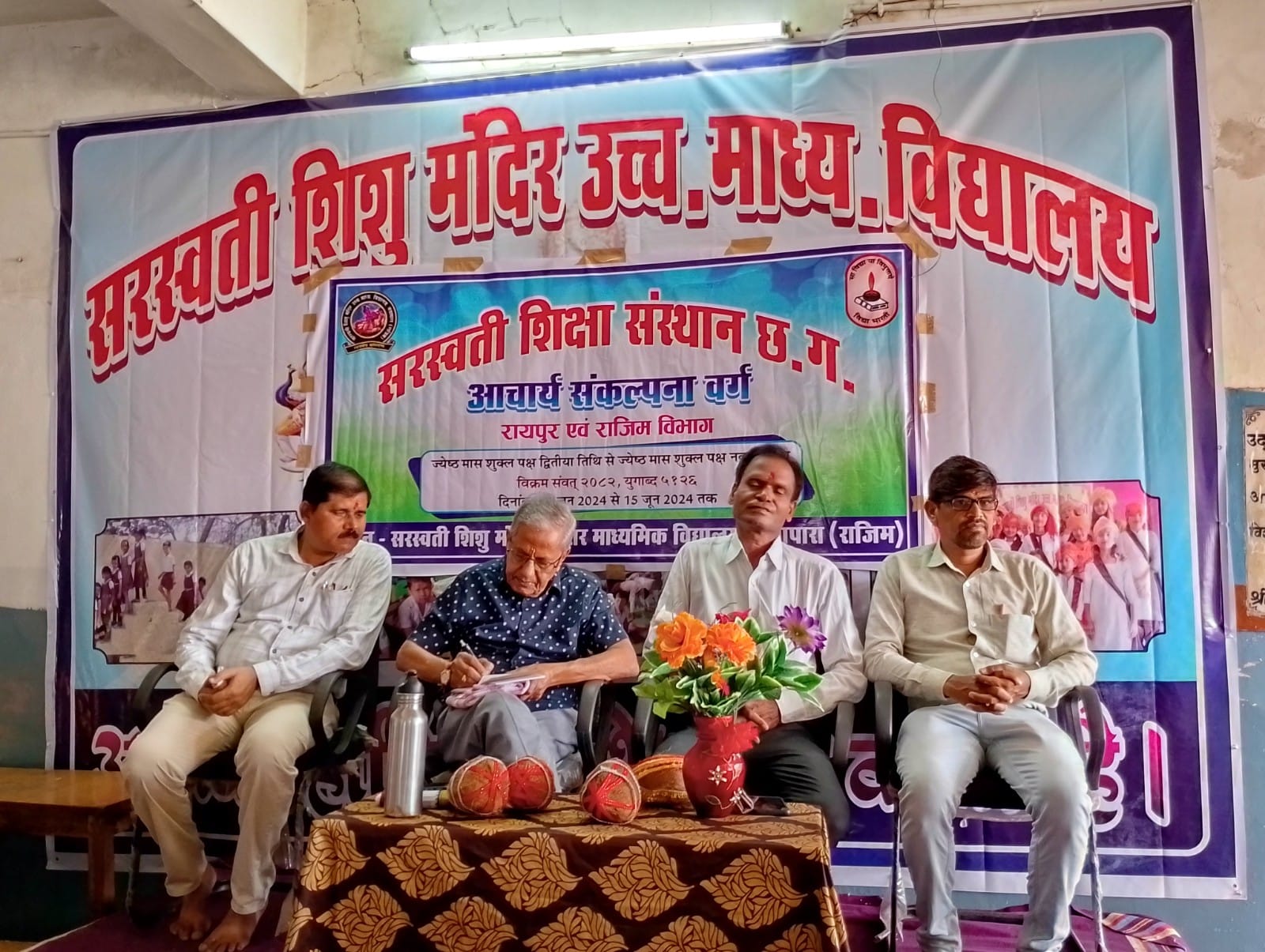 नवापारा राजिम – सरस्वती शिशु मंदिर नवापारा में नवीन आचार्य संकल्पना प्रशिक्षण वर्ग 2024 रायपुर राजिम विभाग का उद्घाटन समारोह पूर्वक किया गया ।कार्यक्रम का शुभारंभ मुख्य अतिथि बद्रीनाथ केसरवानी सरस्वती शिक्षा संस्थान के पूर्व अध्यक्ष वर्तमान रायपुर विभाग प्रभारी, श्रीराम जानकी शिक्षण समिति नवापारा सचिव वीरेंद्र कुमार साहू ,उपाध्यक्ष प्रफुल्ल दुबे, प्रीति अग्रवाल समाज सेवी, जीवन साहू सरपंच प्रतिनिधि डोंगी तराई समाज सेवी, रायपुर विभाग समन्वयक रामकुमार वर्मा प्राचार्य गौरीशंकर निर्मलकर ने मां सरस्वती भारत माता और ओम के समक्ष दीप प्रज्वलित कर कार्यक्रम का शुभारंभ किया ।