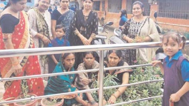 अभ्यास स्कूल में पौधे रोपित कर बच्चों को बताई गई उनकी वानस्पतिक उपयोगिता ।