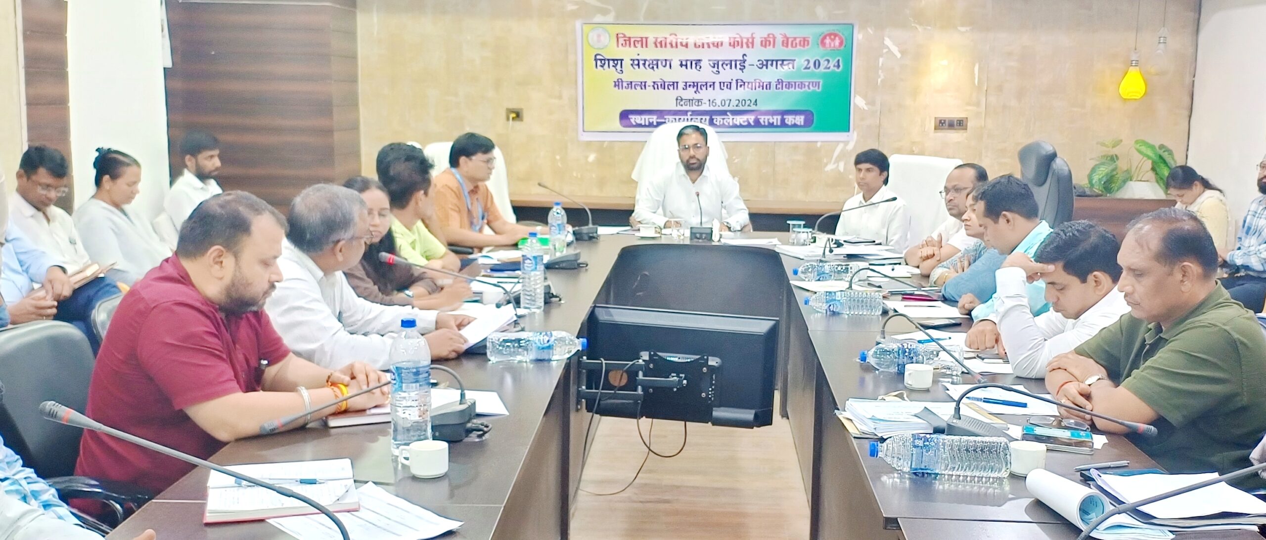 उत्तर बस्तर कांकेर – कलेक्टर नीलेश कुमार क्षीरसागर की अध्यक्षता में आज जिला कार्यालय के सभाकक्ष में जिला स्तरीय टास्क फोर्स की बैठक हुई, जिसमें शिशु संरक्षण माह एवं मीजल्स-रूबेला उन्मूलन एवं नियमित टीकाकरण के संबंध में चर्चा की गई। कलेक्टर ने बैठक में ‘शिशु संरक्षण माह’ के दौरान सभी निर्धारित आयु के बच्चों के शत-प्रतिशत दवाई एवं टीकाकरण सुनिश्चित करने के निर्देश दिए। साथ ही उन्होंने मौसमी बीमारियों से बचाव एवं रोकथाम विशेषकर मलेरिया की रोकथाम के आवश्यक इंतजाम करने और विशेष सावधानी बरतने को कहा। कलेक्टर ने जिले के सभी नागरिकों से अपील करते हुए कहा कि शिशु सरंक्षण माह के सफल आयोजन एवं शत-प्रतिशत उपलब्धि प्राप्त करने हेतु अपने तथा अपने आस-पास के 09 माह से 05 वर्ष तक आयु के सभी बच्चों को विटामिन ”ए“ तथा 06 माह से 05 वर्ष तक आयु के सभी बच्चों को आयरन फोलिक एसिड की खुराक देने में सहयोग प्रदान करें। कलेक्टर ने जिले से मीजल्स रूबेला के उन्मूलन हेतु कार्ययोजना अनुसार इसकी निगरानी में सहयोग करने हेतु अन्य जिला स्तरीय अधिकारियों को भी निर्देशित किया।