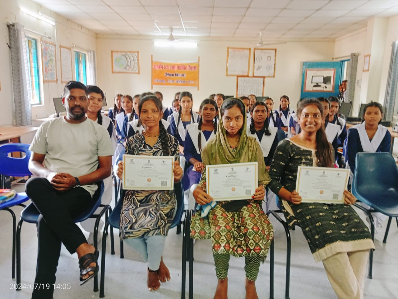 मनेंद्रगढ़/एमसीबी – नेशनल स्किल डेवलपमेंट कारपोरेशन ऑफ़ इंडिया के तहत शासकीय उच्चतर माध्यमिक शाला शिक्षा विभाग में संचालित हो रहे व्यावसायिक शिक्षा के अंतर्गत आई टी कंप्यूटर साइंस के विद्यार्थियों को उनके बेहतर परिणाम और केंद्र शासन के द्वारा यह प्रमाण पत्र उपलब्ध कराया जाता है। हर वर्ष यह विद्यालय में परीक्षा के माध्यम से संचालित होता है, उच्चतम परीणात्मक छात्रों के परिणाम स्वरूप इस प्रमाण पत्र का वितरण किया जाता है, इस प्रमाण पत्र से विद्यार्थी अपने आजीविका और अपने भविष्य के लिए एक अलग पहचान बना सके और उनका मनोबल इस प्रमाण पत्र के माध्यम से बढ़े इसलिए शासकीय कन्या उच्चतर माध्यमिक शाला शिक्षा विभाग में छात्रों को प्रमाण पत्र प्रदान किए गए।प्राचार्य श्री सत्येंद्र कुमार सिंह, टी विजय गोपाल राव, श्रीमती अर्चना वैष्णव एवं विद्यालय के सभी शिक्षक एवं शिक्षिकाओं ने इन छात्रों के उज्जवल भविष्य की कामना की और बेहतर भारत के सृजन का भी संदेश दिया। आईटी के बढ़ते महत्व और उसके विस्तार को बढ़ावा देते हुए विद्यार्थी भी इसे आगे संचालित रखने और जिम्मेदारी उठाने के लिए तत्पर दिखे,उन्होंने अपने अनुभव में बताया कि आईटी का क्षेत्र आज बहुत व्यापक है ,हर एक क्षेत्र में कंप्यूटर विज्ञान आवश्यक है, खास तौर पर नौकरी के संबंध में आईटी का महत्व बढ़ता जा रहा है, आईटी की क्रांति विस्तार रूप से बढ़ रही है, इस तरह विद्यार्थियों ने अपने जैसे छात्राओं को आईटी विषय का चयन करने का प्रोत्साहन दिया है और भविष्य में आईटी का महत्व और अपने भविष्य निर्माण के लिए आईटी के महत्व को छात्रों के सामने अपना अनुभव साझा किया।व्यावसायिक शिक्षा के अंतर्गत विद्यालय में संचालित आईटी यानी कंप्यूटर साइंस के व्यावसायिक प्रशिक्षक चंदन कुमार केवट इस कार्यक्रम में उपस्थित रहे और कार्यक्रम को विशेष स्वरूप देकर कार्यक्रम का समापन किया। विद्यालय परिवार इन सभी विद्यार्थियों के उज्जवल भविष्य की कामना करता है यह संदेश देकर विद्यार्थियों को विदा किया गया।