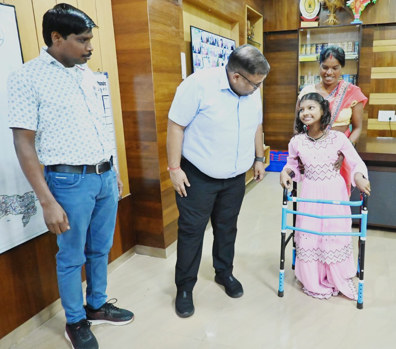 जनदर्शन में कलेक्टर श्री अग्रवाल ने बालिका खुशी को प्रदान किया वॉकर।