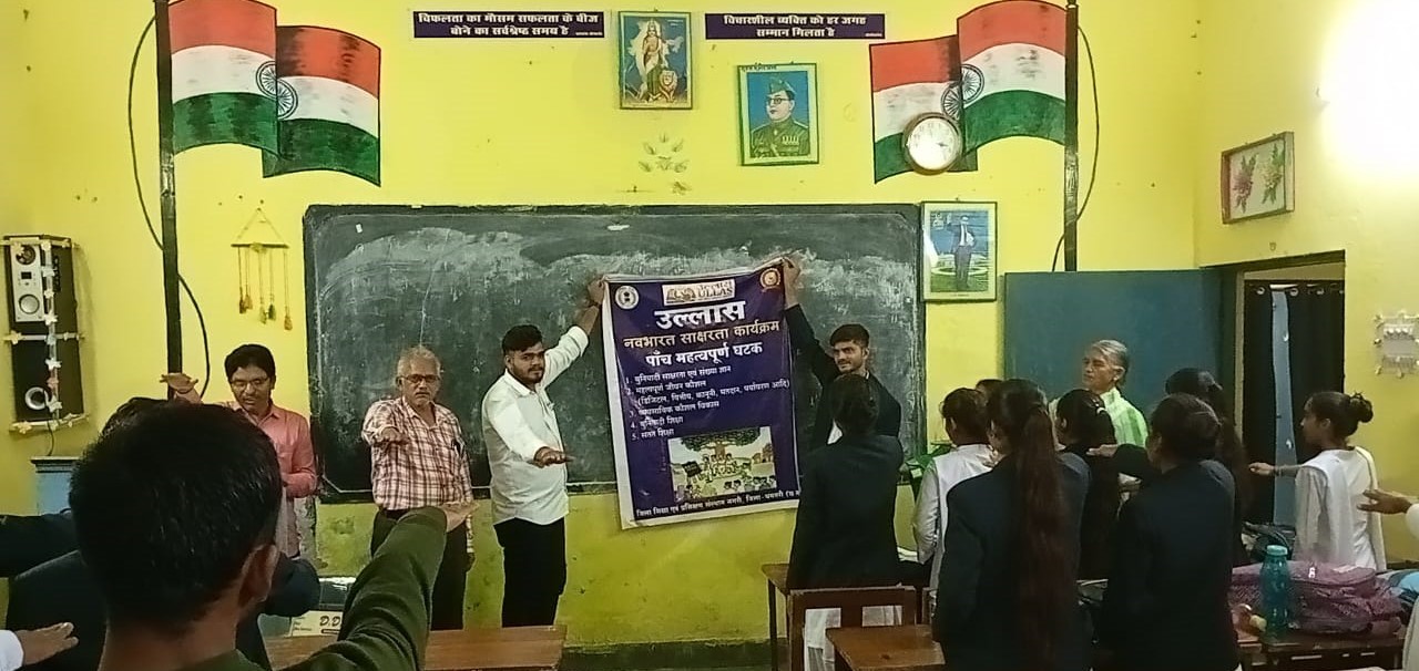 धमतरी – राष्ट्रीय शिक्षा नीति 2020 के तहत अनुशंसित उल्लास नवभारत साक्षरता कार्यक्रम के के तहत 15 वर्ष से अधिक उम्र के असाक्षरों को शत-प्रतिशत साक्षर करने का लक्ष्य है। डाईट नगरी के प्राचार्य ने बताया कि इसे ध्यान में रखकर बुनियादी साक्षरता एवं संख्या ज्ञान, महत्वपूर्ण जीवन कौशल, बुनियादी शिक्षा, व्यावसायिक कौशल विकास, सतत् शिक्षा हेतु डाइट नगरी में अध्ययनरत शिक्षार्थियों को साक्षरता शपथ दिलाई गई। इस अवसर पर डाइट नगरी के अकादमिक संकाय, कार्यालयीन सदस्य एवं द्वितीय वर्ष के शिक्षार्थी उपस्थित रहे।
