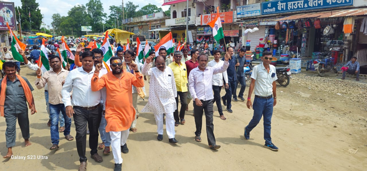 भाजयुमो के अगुवाई में पूर्व संसदीय सचिव हुए तिरंगा यात्रा में शामिल
