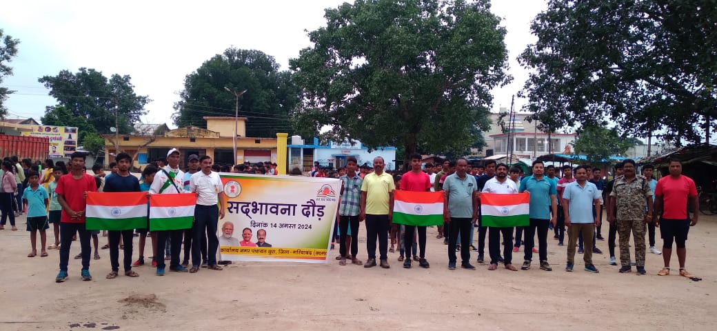 छुरा- स्वतंत्रता दिवस के पूर्व दिन पर प्रतिवर्ष होने वाले सद्भावना दौड़ में इस वर्ष भी शिक्षा विभाग, नगर पंचायत, जनपद पंचायत, पुलिस विभाग, कृषि विभाग, स्वास्थ्य विभाग, छात्रावास, खिलाड़ी शामिल हुए सद्भावना दौड़ में शमिल होने आये छात्र छात्राओं को कतारबद्ध खड़े कराकर राष्ट्र ध्वज तिरंगा के संबंध म बताया गया पश्चात नगर पंचायत सीएमओ लालसिंह मरकाम, कयाराम यादव वरिष्ठ करारोपण अधिकारी जनपद पंचायत, यशवंत यादव जिला अध्यक्ष वेटलिफ्टिंग संघ एवं एएसआई मोहन ठाकुर ने झंडी दिखाकर रवाना किया सद्भावना दौड़ का नेतृत्व समाजसेवी शीतल ध्रुव पुरानिक नागेश, हीरालाल साहू, कुलेश्वर मरकाम अधीक्षक कर रहे थे आगे आगे पुलिस वाहन मार्ग को निर्बाधा करते आगे बढ़ रहे थे दौड़ बस स्टैण्ड से प्रारंभ हुआ और स्वर्ण जयंती चौक होते नगर पंचायत कार्यालय सदररोड बजरंग चौक होते बस स्टैण्ड पर समाप्त हुआ। अपने उद्बोधन में नगर पंचायत अध्यक्ष खोमन चंद्राकर ने कहा कि देश भक्ति केवल सीमा में जाकर नहीं की जाती पर्यावरण को स्वच्छ बनाना भी देशभक्ति है मां के नाम पेड़ लगाना भी देशभक्ति है पढ़ाई में अच्छे अंक पाकर नगर प्रदेश और देश का नाम रोशन करना खिलाड़ियों का मेडल लाना भी देश भक्ति है सीएमओ मरकाम ने कहा कि हर मनुष्य में देशभक्ति बचपन से जागृत करना चाहिए देशभक्ति का पाठ सिखाने में स्कूल के साथ साथ समाज का भी दायित्व है इससे पूर्व स्वागत उद्बोधन शीतल ध्रुव ने दिया कार्यक्रम का संचालन हीरालाल साहू ने एवं आभार पुरानिक नागेश ने व्यक्त किया। कार्यक्रम में रमेश मेहता तहसीलदार, पुनीत राम ठाकुर, रूपनाथ बंजारे, नगर पंचायत से वीरेन्द्र कुमार ठाकुर, मनोज दुबे, धनेश्वर नाग, जितेन्द्र पाटकर, कमलेश, रोमन ठाकुर कृषि विस्तार अधिकारी,मनोज पटेल, कमलेश स्वास्थ्य विभाग, मनहरण पटेल, रुपेश शर्मा, तेजराम साहू, मयाराम साहू, नकुल वर्मा, चंचल सिन्हा, सीताराम, मनीष यादव, बसंत, प्रियेश गोस्वामी, सारांश कंवर गणेश सेन युवराज सिन्हा डिगेश्वरी गोस्वामी पानसिंग कमलेश कृष्णा सोनिया गुंजन उर्वशी प्रिया ललिता रेणुका सहित बड़ी संख्या में छात्र छात्राएं उपस्थित रहे।