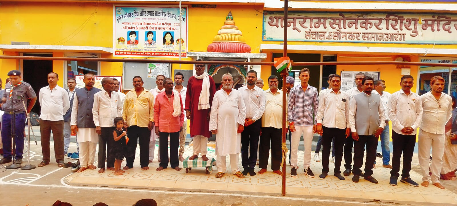 आरंग – सृजन सोनकर विद्या मंदिर उच्चतर माध्यमिक विद्यालय आरंग में आजादी के महापर्व स्वतंत्रता दिवस के 78 वें वर्ष के अवसर पर 78 फीट के भव्य तिरंगे की शोभा यात्रा निकाली गई जो कि आरंग विधानसभा का अब तक का सबसे बड़ा तिरंगा है। जिसे देखने के लिए लोगों की जमकर भीड़ लग गई पूरे रास्ते भारत माता की जयकारों से गूँजने लगा जो विद्यालय से प्रारंभ होकर,हाई स्कूल मैदान,नेता जी चौक,बस स्टैण्ड ,आजाद चौक से होते हुए नगर के मुख्य ध्वजारोहण स्थल तक संपन्न हुआ। इस अवसर पर विद्यायल में ध्वजारोहण कार्यक्रम के मुख्य अतिथि विष्णु प्रसाद सोनकर ,अध्यक्षता लखन लाल सोनकर, विशिष्ट अतिथि , शंकर लाल सोनकर, मदन मोहन सोनकर, धर्मराज सोनकर, तोकेराम सोनकर, भूपेश सोनकर, धन्नू राम सोनकर, मदन लाल सोनकर, सावत सोनकर, रामानंद सोनकर, पचकौड सोनकर, दुकालू सोनकर, संदीप सोनकर, योगेंद्र सोनकर रहे ।