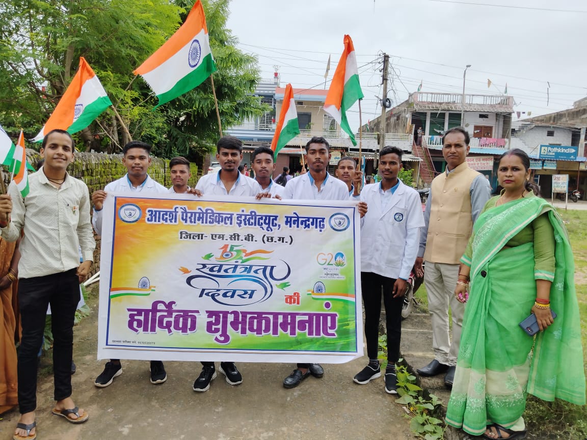 इस अवसर पर छात्र छात्राओं ने सांस्कृतिक प्रस्तुतियों के माध्यम से अपनी प्रतिभा का प्रदर्शन किया, जो देशभक्ति की भावना से ओतप्रोत रहीं। छात्रों ने देशभक्ति के गीत गाये जिनमें स्वतंत्रता सेनानियों द्वारा किये गये बलिदानों को जीवंत कर दिया। एक विशेष नाटिका भी प्रस्तुत की गई, जिसमें भारत के स्वतंत्रता संग्राम के महत्वपूर्ण क्षणों को चित्रित किया गया, जिससे राष्ट्र की दृढ़ता और साहस की याद ताजा हो गई।आदर्श पैरामेडिकल संस्था के संचालक रमेश सोनी ने कहा कि स्वतंत्रता दिवस का यह समारोह हमारे देश की आजादी की यात्रा और इसके साथ आने वाली जिम्मेदारियों का एक मार्मिक स्मरण है। हम गुणवत्तापूर्ण शिक्षा प्रदान करने और छात्रों के समग्र विकास को बढ़ावा देने के लिए प्रतिबद्ध है। हमें एक ऐसा वातावरण बनाने का प्रयास करना चाहिए जो सीखने, रचनात्मकता और सामुदायिक भावना को प्रोत्साहित करता है।संस्था की ओर से आयोजित कार्यक्रम को संबोधित करते हुए मुख्य अतिथि वीरेन्द्र राणा ने कहा कि काफी यातनाएं झेलने के बाद हम सबको यह आजादी मिली है।इसलिए महान और विकसित भारत बनाने के साथ इस आजादी को अक्षुण्य बनाए रखने का संकल्प हम सब लें। स्वच्छता का पाठ पढ़ाते हुए उन्होंने कहा कि अपने आसपास स्वच्छता का विशेष ख्याल रखें।अगर कहीं भ्रष्टाचार दिखे तो उसे रोकने की दिशा में पहल करें। इस प्रकार के छोटे-छोटे प्रयास से हम देश के विकास में अपना अहम योगदान दे सकते हैं।उन्होंने आजादी की लड़ाई में बलिया के योगदान को भी सबसे साझा किया। डॉ. रश्मि सोनकर ने इस अवसर पर कहा कि देशभक्ति की भावना से ओतप्रोत होकर एकता, अखंडता और सांप्रदायिक सद्भाव को बनाए रखना हम सबका कर्तव्य है। इससे देश विकास के पथ पर और तेजी से अग्रसर होगा। आजाद भारत के सपने को साकार करने के लिए हम उन महापुरुषों को हृदय से नमन करते हैं, जिनके अथक संघर्ष एवं बलिदान से इस महान राष्ट्र का निर्माण हुआ है। आज भारत दुनिया का सबसे बड़ा लोकतंत्र है। यहां 18 वर्ष से ऊपर के आयु के सभी नागरिकों को समान रूप से वोट देने का अधिकार है। आप सभी से अपील है कि सभी लोग इस लोकतांत्रिक प्रक्रिया में अपना बहुमूल्य योगदान दें। मनेन्द्रगढ़ की जिस पावन धरती पर हम सब मौजूद हैं, वह ज्ञान और तपस्या की धरती रही है। खनिजों से परिपूर्ण, वन क्षेत्रों से आच्छादित यह धरती विश्व पटल पर अपनी एक अलग पहचान रखती है।