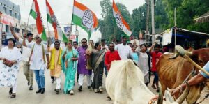 इसके विरोध में कांग्रेस पार्टी ने जोरदार बारिश के बीच भीगते हुए महासमुंद अनुविभागीय कार्यालय में गायों को सौंपते हुए गौ रक्षा के अपील की गई जिससे गौवंश की रक्षा के साथ-साथ मानव की भी गायों से टकराकर जो मौतें एक्सीडेंट से हो रही है उस पर रोक लग सके इस घेराव मेंंडॉ. रश्मि चंद्राकर जिला अध्यक्ष एवं छाया विधायक,पूर्व विधायक विनोद चंद्राकर,पूर्व बोर्ड उपाध्यक्ष आलोक चंद्राकर,बोर्ड उपाध्यक्ष खिलावन बघेल,प्रभारी महामंत्री सुनील शर्मा,नगर पालिका अध्यक्ष श्रीमती राशि महिलांग,उपाध्यक्ष कृष्णा चंद्राकर,खिलावन साहू ग्रामीण अध्यक्ष,श्रीमती साधना नैनी सिंह अध्यक्ष महिला प्रकोष्ठ, दाऊलाल चंद्राकर,राजेंद्र चंद्राकर,हीरा बंजारे पूर्व मंडी अध्यक्ष,माया पांडे,ईशा टंडन,सोनम रामटेके,विनोद युगर,अजय थवाईत, टोमन सिंग कागजी,जावेद चौहान,गोपी पाटकर,बसंत चंद्राकर,राजू साहू,लखन चंद्राकर,सागर डोंगरे युवा कांग्रेस के समस्त सदस्य एनएसयूआई के समस्त सदस्य एवं महिला प्रकोष्ठ के महिला सदस्य इस धरना प्रदर्शन में शामिल हुए।