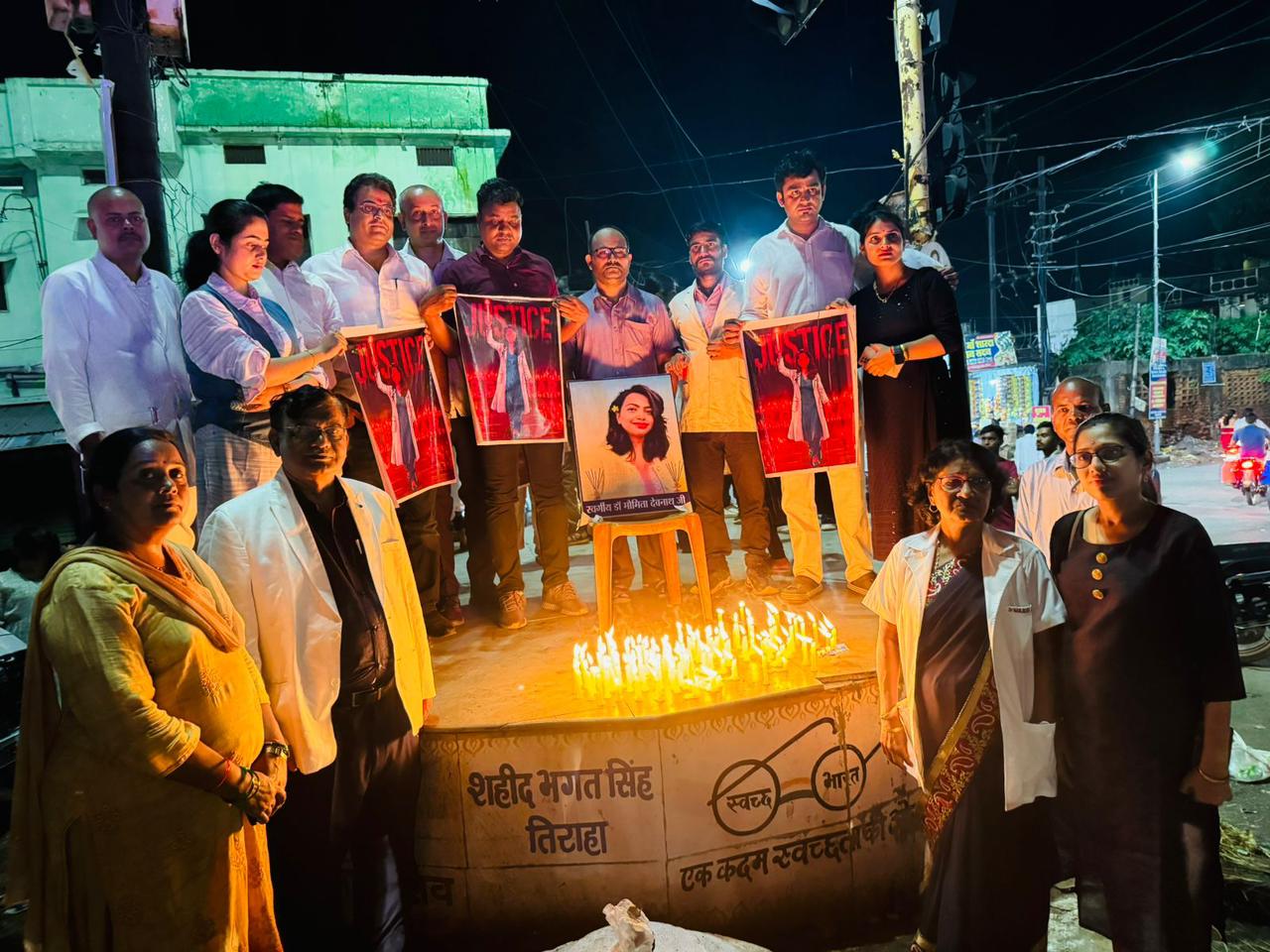 अध्यक्ष आईएमए मनेंद्रगढ़ जिला एमसीबी और सचिव आईएमए मनेंद्रगढ़ जिला एमसीबी के आह्वान पर 17 अगस्त 2024 दिन शनिवार को शाम 7 बजे भगत सिंह तिराहा के पास मनेंद्रगढ़ में सरकारी एवं निजी क्षेत्रों में सेवारत सभी एलोपैथिक, आयुर्वेदिक, होम्योपैथिक, डेंटल, पैरामेडिकल, पैथोलॉजी, डायग्नोस्टिक द्वारा मोमबत्तियां जलाकर श्रद्धॉंजलि अर्पित करते हुए जघन्य अपराधियों को जल्द गिरफ़्तार कर फाँसी देने की माँग की गई एवं कोलकाता रेप और मर्डर केस की घटना के बाद हुए प्रदर्शन पर सरकार से क़ानून लागू करने की माँग की गई।