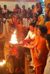 पुजारी ने विशाल आरती के माध्यम से डमरू दल, ढोल नगाड़ों की ध्वनि और सांस्कृतिक प्रस्तुति के साथ आरती मां गंगा की आरती की। आरती में के सैकड़ों श्रद्धालु शामिल हुए
