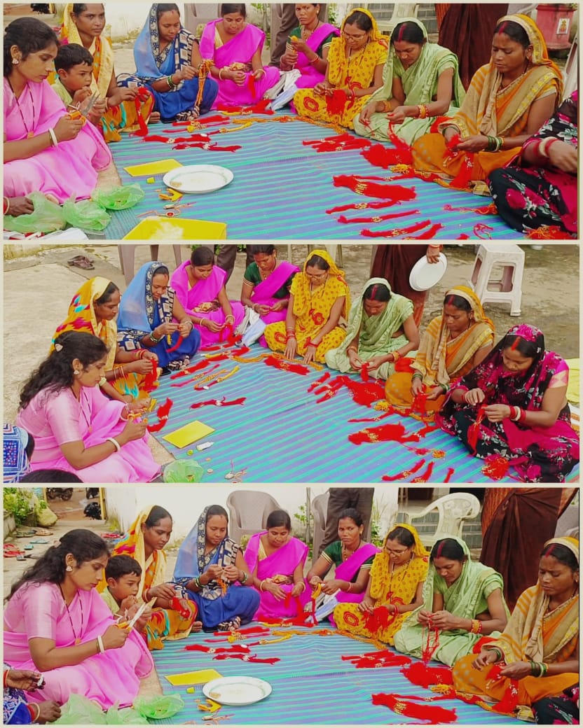 जिले में स्व सहायता समूह दीदियों के द्वारा रक्षाबंधन त्योहार के उपलक्ष्य में चावल, दाल, गेहूं, धान, स्टोन, पत्थर,मोती, अभ्रक, ऊन, खीरे के बीज, बांस, कलावा, रेशम, मौली धागा आदि का प्रयोग कर राखी निर्माण किया जा रहा है, जिसे स्थानीय मार्केट में ही विक्रय किया जा रहा है। आइए इस रक्षाबंधन पर्व पर हम समूह की दीदियों द्वारा स्थानीय स्तर पर निर्मित रक्षासूत्रों राखियो का अधिक से अधिक उपयोग कर बहनों का आशीष व स्नेह प्राप्त करें। इस कार्य मे जिला व ब्लॉक की बिहान टीम लगातार सहयोग व समन्वय कर रही है।