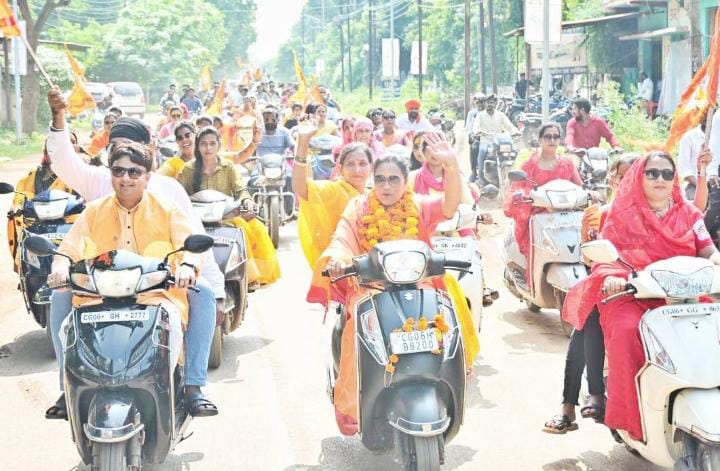 महासमुंद। शहरवासियों की सुख समृद्धि की कामना को लेकर नगर पालिका अध्यक्ष श्रीमती राशि त्रिभुवन महिलांग व पूर्व नपा उपाध्यक्ष त्रिभुवन महिलांग के नेतृत्व में शनिवार को पालिका कार्यालय परिसर से बम्हनी कनेफेरा तक भव्य कांवड़ यात्रा निकाली गई। महिलांग परिवार व नपाध्यक्ष के आह्वान पर कांवड़ यात्रा में शामिल होने के लिए सुबह दोपहिया से सैंकड़ों कांवरिए भगवान भोलेनाथ का जलाभिषेक करने वात्रा में शामिल होने पालिका कार्यालय पहुंचे। पालिका कार्यालय से 11 बजे भगवान भोलेनाथ के जयकारों के साथ कांवरिए कचहरी चौक, बरोडा, शास्त्री चौक होते बम्हनी स्थित श्वेत गंगा से बम्हनेश्वर महादेव का जलाभिषेक किया, बाद जल लेकर कनेकेरा स्थित कनेश्वर महादेव का जलाभिषेक करने के लिए रवाना हुए। यात्रा में शामिल सभी भक्तों ने नपाध्यक्ष श्रीमती राशि महिलांग और त्रिभुवन महिलांग के साथ बम्हनी और कनेकेरा स्थित शिवलिंग में जलाभिषेक किया और परिवार के सुख-समृद्धि की कामना की। कांवड़ यात्रा में शामिल सभी भक्तों का नपाध्यक्ष श्रीमती महिलांग व महिलांग ने आभार जताया वहीं कांवड़ यात्रा आयोजित करने के लिए नागरिकों ने भी श्रीमती महिलांग व परिवार की प्रशंसा की। यात्रा में सभापति सरला गोलू मदनकार, बबलू हरपाल, डमरूधर माँझी के साथ नीरज परोहा, अरिश अनवर, सघनजोत सिंग, सोमेश महिलांग, अंकित राय, प्रताप अंबिलकर, दीपक ठाकुर, सुरज नायक, रुपेश महिलांग, अंकित महिलांग, उदय सिन्हा, सुनील नायक, दीपक चंद्राकर, जय कोसरिया, पप्पू साहू, जितेश चंद्राकर,, नितिन राजपुरोहित, गुलाब राजपुरोहित, मुरारी साहू, तरेन चंद्राकर, माया पांडेय, लक्ष्मी सोनी, ममता बरगा, राखी ठाकुर, डॉली मदनकार, ईशा टंडन, सोनम, प्रिया मदनकार, रानी, रमा, टिकेश्वरी, हेमलता, सोम्पा बोस, रेखा बेहरा, रागिनी, सुरेखा शर्मा, दुर्गा यादव, नम्रत्ता देवांगन, मनीषा परोहा, रितुषा परोहा, पिंकी सोना, रितु महिलांग, दुलारी पटेल, बिंदु विशाल, सुमति कसना,पार्वती ध्रुव, भुनेश्वरी साहू, रंजिता चौहान समेत बड़ी संख्या में नेता और नागरिक गण शामिल रहे।