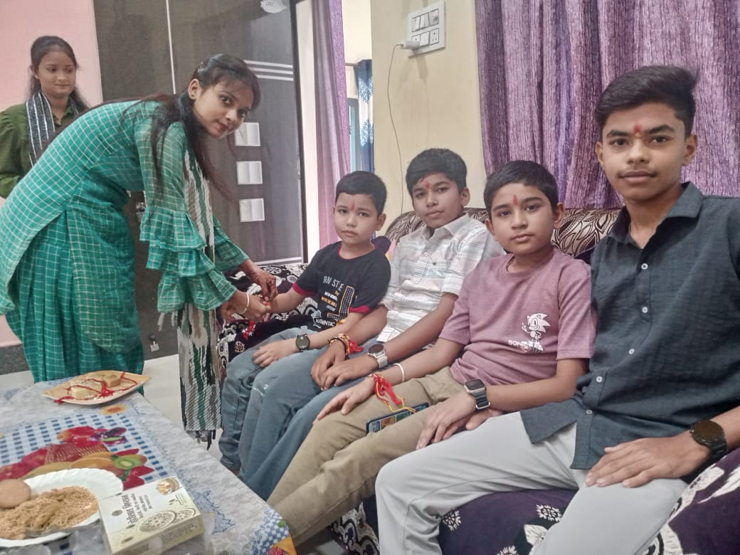 बहनों ने भाइयों की कलाई पर बांधी राखी।