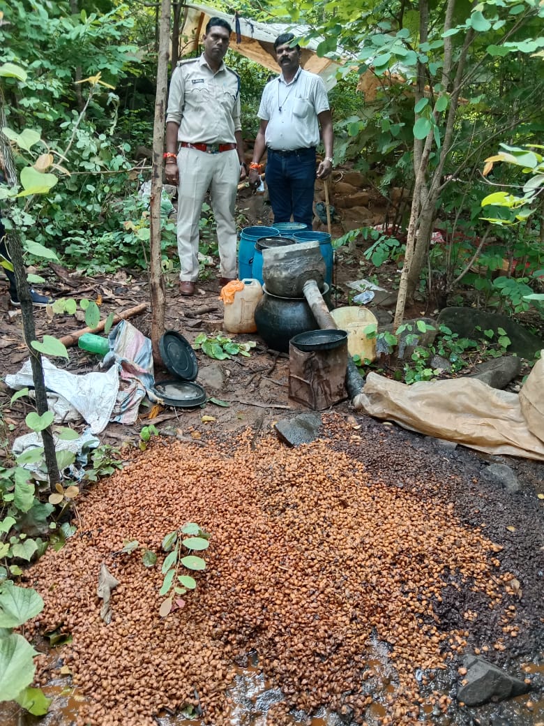 60 लीटर हाथभट्टी महुआ शराब जब्त