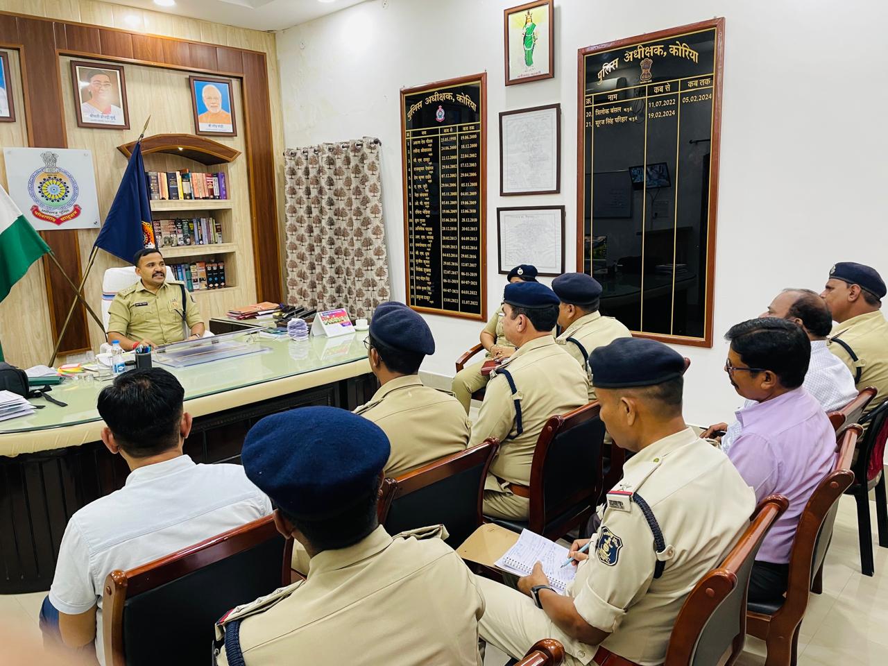 बैकुंठपुर/कोरिया – आज सरगुजा रेंज के पुलिस महानिरीक्षक अंकित गर्ग के निर्देशानुसार NDPS अधिनियम के प्रभावी क्रियान्वयन के संबंध में एक महत्वपूर्ण बैठक आयोजित की गई। SP कोरिया द्वारा आहूत इस बैठक में NDPS नोडल अधिकारी अतिरिक्त पुलिस अधीक्षक मोनिका ठाकुर, SDOP बैकुंठपुर राजेश साहू, प्रशिक्षु DySP रविकांत सहारे, सभी थाना प्रभारी, स्टेनो, रीडर और DCB शाखा के प्रभारी उपस्थित रहे।उक्त बैठक में यह स्पष्ट रूप से निर्देशित किया गया कि एनडीपीएस अधिनियम के अंतर्गत बार-बार अपराध करने वाले अपराधियों को चिन्हित कर उनके विरुद्ध निवारक निरोध (Preventive Detection) की प्रभावी कार्रवाई की जाए। इसके लिए सभी थाना प्रभारियों को निर्देशित किया गया कि वे शीघ्र ही प्रकरण तैयार कर प्रस्तुत करें।