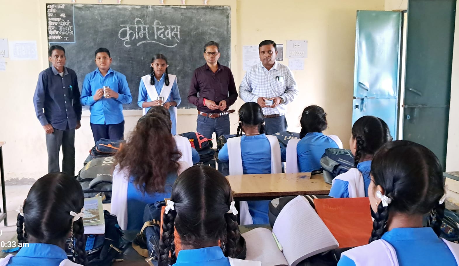 राजिम :- राष्ट्रीय कृमि मुक्ति दिवस देश के प्रत्येक बच्चे को कृमि मुक्त बनाने के लिए स्वास्थ्य और परिवार कल्याण मंत्रालय,भारत सरकार की एक पहल है।राज्य शासन के निर्देशानुसार 29 अगस्त को राष्ट्रीय कृमि मुक्ति दिवस का आयोजन किया गया।इसी तारतम्य में शासकीय उच्चतर माध्यमिक विद्यालय बिजली राष्ट्रीय कृमि मुक्ति दिवस के अवसर पर नवमी से बारहवीं तक के छात्र छात्राओं को एल्बेंडाजोल की गोली खिलाई गई। इस अवसर पर संस्था के प्राचार्य पूरन लाल साहू ने कहा कि राष्ट्रीय कृमि मुक्ति दिवस की शुरुआत स्वास्थ्य और परिवार कल्याण मंत्रालय द्वारा 2015 में की गई थी. इस दिवस का मुख्य उद्देश्य आंतों के कीड़ो के बारे में जागरूकता बढ़ाना और मृदा संचारित कृमि का पूर्ण उन्मूलन प्राप्त करना है.एल्बेंडाजोल एक सुरक्षित दवा है।इस दवा से पेट मे कीड़ो या कृमियों को समाप्त करने के लिए दी जाती है।एल्बेंडाजोल की गोली खिलाने से बच्चे खून की कमी (एनीमिया) के शिकार से बच सकते है।यह टेबलेट बच्चों के शारीरिक और मानसिक विकास के लिए 01 से 19 वर्ष तक बच्चों को खिलाना जरूरी है।हमें पीने के पानी को हमेशा ढँक कर रखना चाहिए।शौचालय का उपयोग करने से पहले और बाद में नियमित रूप से साबुन और गर्म पानी से हाथ धोने से आंतों के कीड़े से बचा जा सकता है। आज जो छात्र छात्राएं गोली नहीं खा पाए है उन्हें मॉक अप दिवस के दिन 04 सितंबर को गोली खिलाई जावेगी। इस अवसर पर प्राचार्य पूरन लाल साहू,व्याख्याता दिनेश कुमार साहू,विनय कुमार साहू,नरेन्द्र कुमार वर्मा,रेखा सोनी,गीतांजली नेताम,संतोषी गिलहरे,व्यायाम शिक्षक नकुल राम साहू,रुद्रप्रताप साहू,क्लर्क दुष्यंत कुमार साहू, तोमन राम साहू,भृत्य आकाश सूर्यवंशी एवं छात्र छात्राएं उपस्थित थे।