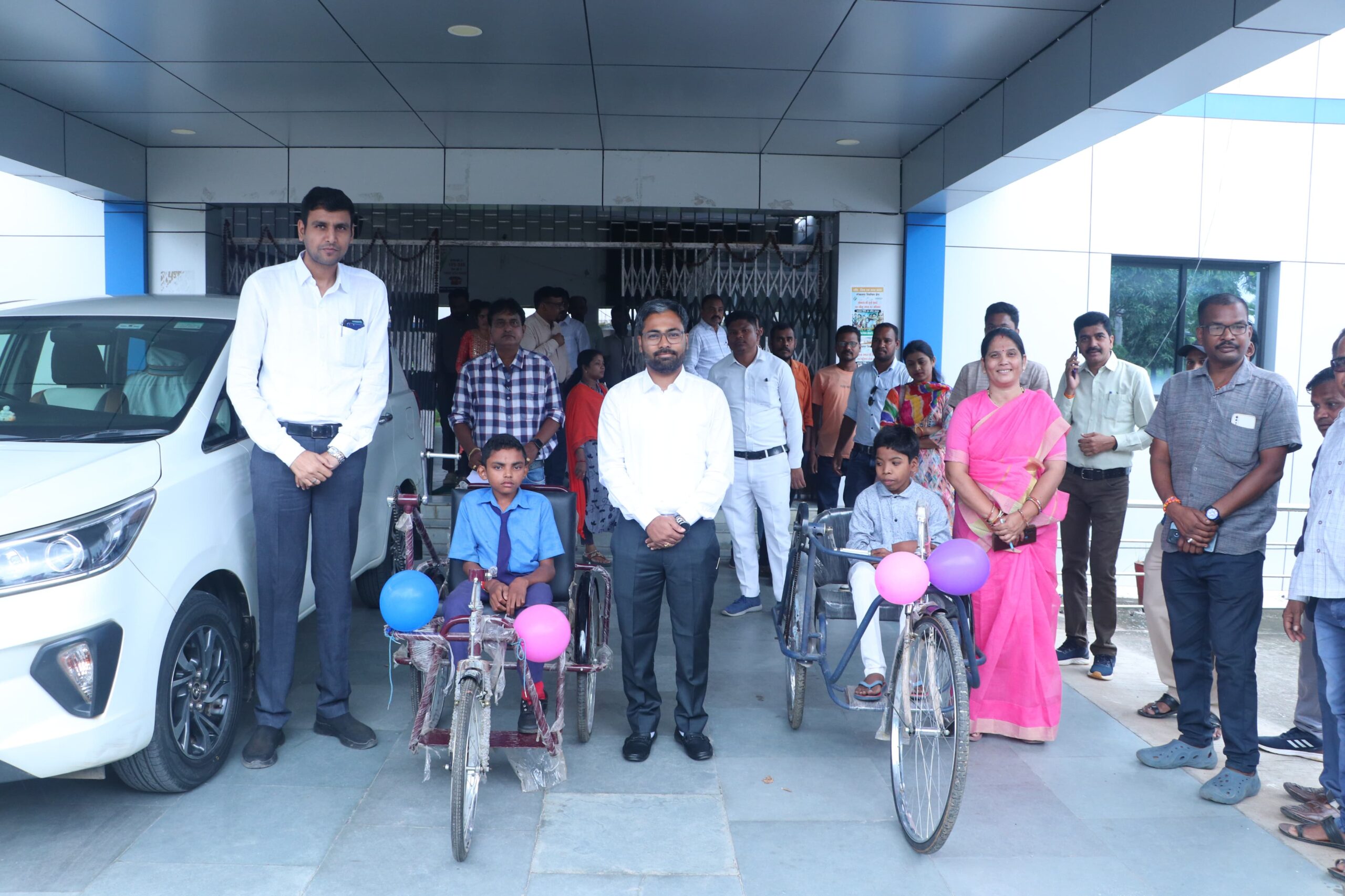 उत्तर बस्तर कांकेर – कलेक्टर निलेश कुमार महादेव क्षीरसागर के द्वारा आज जिला पंचायत परिसर में जिले के दो दिव्यांग छात्रों को ट्रायसिकल प्रदान किया गया। उप संचालक समाज कल्याण विभाग ने बताया कि नरहरपुर विकासखण्ड के ग्राम देवरी बालाजी निवासी छात्र संतु शोरी 90 प्रतिशत दिव्यांग हैं और कांकेर विकासखण्ड के ग्राम सुभिया मुड़पार निवासी छात्र केवेन्द्र कुमार भी पैर से दिव्यांग हैं। दोनों को दिव्यांग होने के कारण स्कूल आने-जाने में परेशानियों का सामना करना पड़ता था। ट्रायसिकल मिलने पर दोनों छात्रों ने प्रसन्नता जताते हुए मुख्यमंत्री विष्णुदेव साय, विधायक कांकेर आशाराम नेताम एवं जिला प्रशासन के प्रति आभार व्यक्त किया। इस अवसर पर जिला पंचायत सीईओ सुमित अग्रवाल एवं जिला शिक्षा अधिकारी उपस्थित थे।
