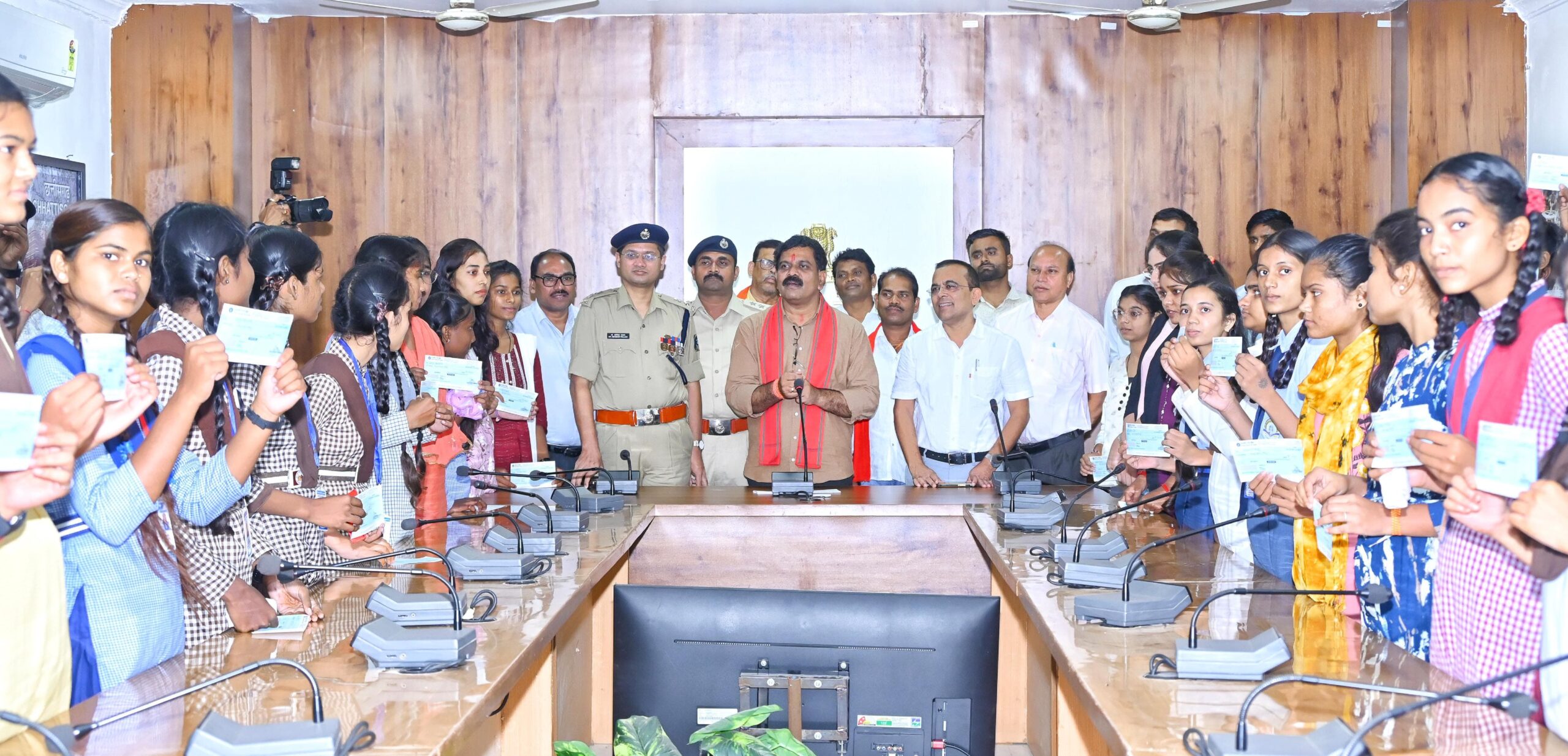 उपमुख्यमंत्री विजय शर्मा ने कबीरधाम जिले के 59 मेघावी विद्यार्थियों को स्वेच्छा अनुदान से 3 लाख 45 हज़ार का चेक प्रदान किया।