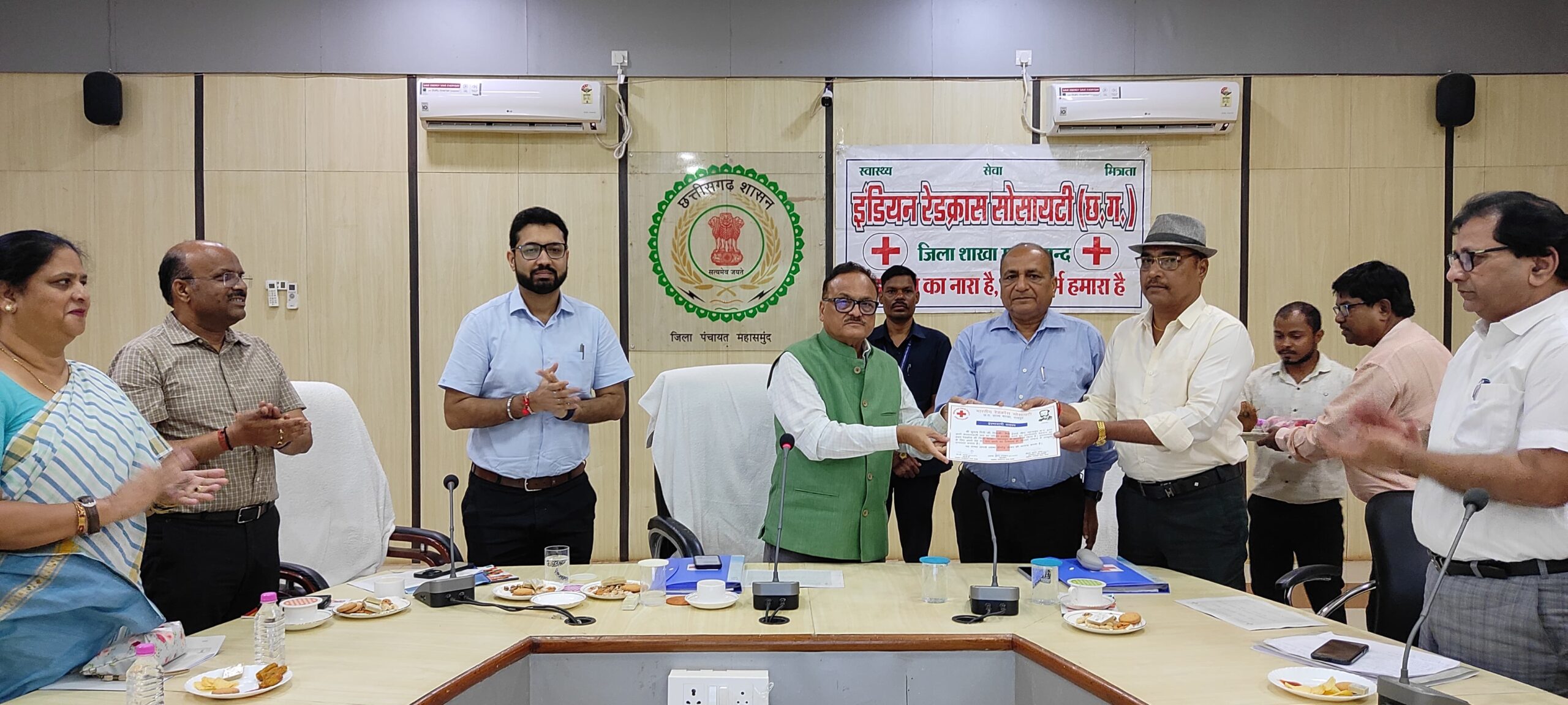 महासमुंद – राज्य रेडक्रॉस के मुख्य कार्यपालन अधिकारी सह जनरल सेक्रेटरी एम.के. राउत की अध्यक्षता में आज जिला पंचायत के सभाकक्ष में जिला रेडक्रॉस पदाधिकारियों की बैठक हुई। बैठक में राज्य रेडक्रॉस सोसायटी के चेयरमेन अशोक अग्रवाल, कलेक्टर विनय कुमार लंगेह मौजूद थे। बैठक में रेडक्रॉस के मुख्य कार्यपालन अधिकारी और जनरल सेक्रेटरी, एम.के. राउत एवं पदाधिकारियों का स्वागत रेडक्रॉस इकाई कॉलेज की वालेंटियर छात्राओं ने रेडक्रॉस के ध्वज गीत द्वारा अभिनंदन किया गया। बैठक में श्री राउत ने कहा कि रेडक्रास का उद्देश्य सेवाभाव को बढ़ावा देना है। इसके लिए सभी महाविद्यालयों में रेडक्रॉस के संबंध में कार्यक्रम आयोजित कर रक्तदान और अन्य गतिविधियां आयोजित करने, प्रबंध समिति के लिए चुनाव कराने हेतु तिथि, स्थान, समय निर्धारित कर समिति के सदस्यों का चयन 30 सितंबर तक करने कहा। उन्होंने रेडक्रॉस सोसायटी में जनप्रतिनिधियों सहित हाईस्कूल से लेकर कॉलेज के छात्र-छात्राओं को सदस्य बनाने पर जोर दिया ताकि सदस्यों के मन में दुर्घटना व आपदा के दौरान पीड़ितों की सहायता, मानवता और निष्पक्षता की भावना पैदा हो। उन्हांने रेडक्रॉस के कार्यों को और अधिक विस्तृत करने हेतु उद्योगों में कार्यरत श्रमिकों, पुलिस विभाग में खासकर नगर सैनिक, यातायात पुलिस, ग्राम पंचायत स्तर पर सचिव, पंच-सरपंच को जोड़ने के साथ ही उन्हें फर्स्ट एड (प्राथमिक चिकित्सा) की जानकारी व रेड क्रॉस से संबंधित कार्यों से अवगत कराने हेतु सम्बंधित अधिकारियों से कहा। ताकि मरीज को सही समय में मदद मिल सके और समय की बचत हो।कलेक्टर श्री लंगेह ने बैठक में पीपीटी के माध्यम से जिले में संचालित रेडक्रॉस सोसाइटी के गतिविधियों के विषय में जानकारी देते हुए बताया कि जिले के 188 शासकीय, 82 अशासकीय हाई व हायर सेकेंडरी स्कूलों में जूनियर रेडक्रॉस प्रशिक्षण दिया जा रहा है। जिले में 17 समस्त महाविद्यालयों में यूथ रेड क्रॉस इकाइयों का गठन किया गया है। वहीं जिले में 251 लोगों को आजीवन सदस्य बनाया गया है। उन्होंने बताया कि टीबी मुक्त भारत अभियान के तहत 342 निःक्षय मित्र बनाए गए हैं। उन्होंने रेडक्रॉस द्वारा संचालित दवा दुकान, ब्लड बैंक के सम्बंध में विमर्श किया। इसके साथ ही जिले में सदस्यता अभियान चलाया जा रहा है।रेडक्रॉस के कार्यां और गतिविधियों से प्रभावित होकर सुभाष गिरी गोस्वामी ने देह दान करने की घोषणा की थी। उनके इस मानवीय पहल के लिए रेडक्रॉस के जनरल सेक्रेटरी व चेयरमेन सहित सभी सदस्यों ने मानवता की अद्भुत मिशाल पेश करने के लिए श्री गोस्वामी को शॉल, श्रीफल और प्रमाण पत्र देकर सम्मानित किया। बैठक में रेड क्रॉस सोसायटी की सभापति श्रीमती अनिता जी रावटे, उप