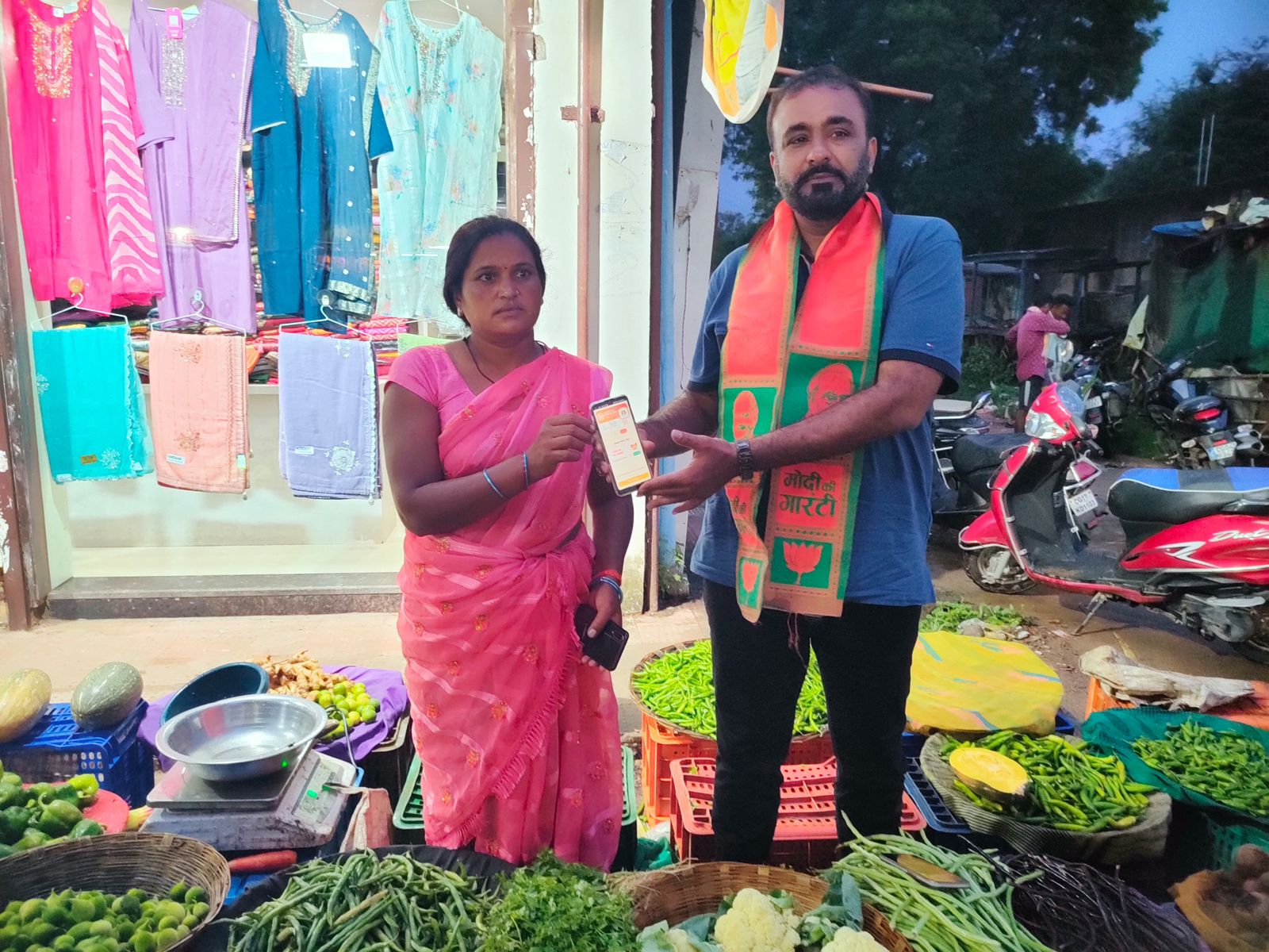 फल सब्जी और चाय चाट गुपचुप बेचने वाले लोगों को मिस काल से दिलाई भाजपा की सदस्यता ।