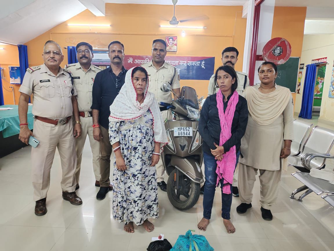मनेंद्रगढ़/एमसीबी – नशीले इंजेक्शन एवं दवाइयों की तस्करी करने के मामले में जिले की झगड़ाखांड पुलिस ने दो महिलाओं को गिरफ्तार करने में सफलता प्राप्त की है। उपरोक्त दोनों महिलाएं सीमावर्ती राज्य मध्य प्रदेश से अवैध नशीली दवाइयों को लाकर छत्तीसगढ़ में बेचने का कार्य कर रही थी। उपरोक्त संबंध में प्राप्त जानकारी के अनुसार पुलिस महानिरीक्षक सरगुजा रेंज सरगुजा अंकित गर्ग के द्वारा पूरे रेंज में चलाये जा रहे नशे के विरूद्ध अभियान के परिपालन में पुलिस अधीक्षक एम.सी.बी. चंद्रमोहन सिंह के द्वारा जिले में नशे के सौदागरों के विरूद्ध कार्यवाही करने हेतु निर्देश प्राप्त होने पर अतिरिक्त पुलिस अधीक्षकअशोक वाडेगावकर एवं अनुविभागीय पुलिस अधिकारी मनेन्द्रगढ ए,. टोप्पो के कुशल मार्गदर्शन पर थाना प्रभारी झगराखाण्ड निरीक्षक अमित कश्यप के द्वारा नशे के व्यापार की रोकथाम एवं नशे के सौदागरो के विरूद्ध कार्यवाही हेतु थाने में एक टीम बनाकर नशे के सौदागरो की लगातार पतासाजी की जा रही थी।इसी दरमियान 09.09.2024 को मुखबिर से सूचना प्राप्त हुई कि भालूगडार दलदल थाना बिजुरी जिला अनूपपुर म.प्र. से दो महिलाएँ अपने कब्जे में अवैध रूप से मादक द्रव्य नशीली इंजेक्शन को रखकर बिक्री करने के आशय से अपने भूरे रंग की टी. व्ही. एस. जुपिटर स्कूटी वाहन क्रमांक- एम.पी. / 65-जेड.ए./ 6944 में रखकर बिजुरी से घुटरीटोला खोंगापानी की ओर आ रही हैं। मुखबिर की सूचना पर थाना प्रभारी झगराखाण्ड के द्वारा अपनी टीम को अर्न्तराज्यीय नशे के सौदागरों के विरूद्ध कार्यवाही करने हेतु रवाना किया गया,घुटरीटोला बैरियर खोंगापानी में पहुंचकर घेराबन्दी कर तथा मुखबिर के बताये अनुसार बिजुरी की ओर से भूरे रंग की टी.व्ही.एस. जुपिटर स्कूटी वाहन क्रमांक- एम.पी. / 65-जेड. ए. / 6944 सेआने वाली दोनो संदिग्ध महिलाओं को रोककर उनका नाम पता पूछा गया।स्कूटी चालक महिला द्वारा अपना नाम कु. पुष्पा सिंह उर्फ रानी स्व. रामजवित सिंह उम्र 21 वर्ष होना तथा उसके पीछे बैठीमहिला द्वारा अपना नाम मीरा सिंह पति स्व० रामजवित सिंह उम्र 41 वर्ष होना बताते हुए स्वयं को स्कूटी चालक महिला की माँ होने एवं वार्ड क्र.-07 भालूगडार दलदल थाना बिजुरी जिला अनूपपुर (म.प्र.) की रहने वाली बताये।उनकी भूरे रंग की टी. व्ही. एस. जुपिटर स्कूटी वाहन क्रमांक एम.पी. / 65-जेड.ए. / 6944 की तलाशी लेने पर स्कूटी की डिक्की के अन्दर एक हरे रंग के थैले में रखे मादक द्रव्य नशीले इंजेक्शन AVIL इंजेक्शन की 99 शीशी (प्रत्येक 10 एमएल) कीमत लगभग 30000/ रूपये एवं काले रंग की पॉलीथीन में रखे BUPRENORPHINE इंजेक्शन की 99 शीशी (प्रत्येक 2 एमएल) नशीली इंजेक्शन कीमत लगभग 5000/ रूपये का मिला, उक्त इंजेक्शन के संबंध में पूछताछ करने पर आरोपीगण द्वारा बहुत समय से इसका