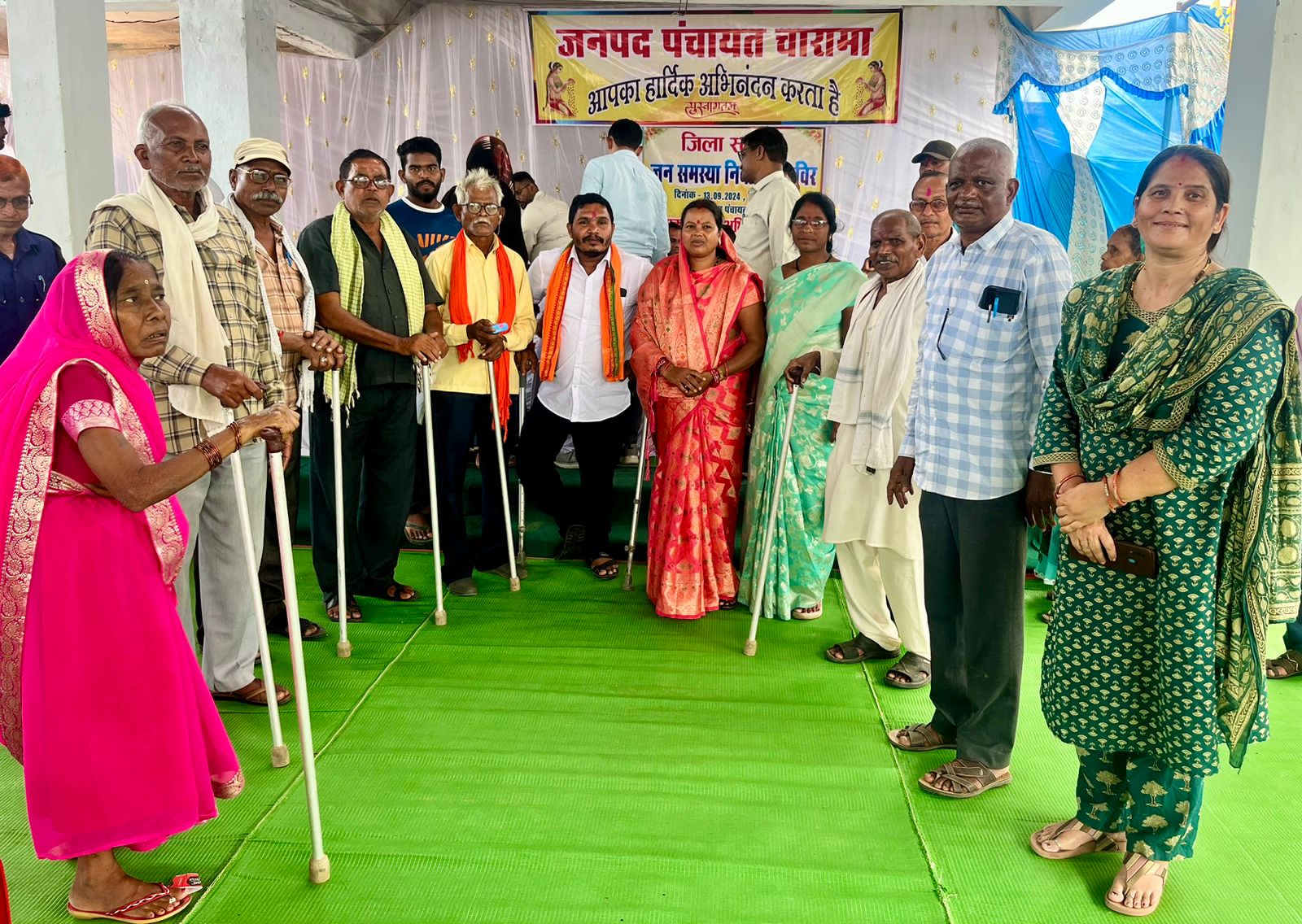 शिविर में मछलीपालन विभाग द्वारा 04 हितग्राहियों को मत्स्याखेट जाल वितरण योजना के तहत ग्राम कंडेल की श्रीमती गूंजा सिन्हा, प्यारी बाई भूआर्य, ग्राम कसावाही के बंशीलाल नेताम और अर्जुन हिड़को को मछली जाल वितरित किया गया। इसी तरह 07 बुजुर्गों को समाज कल्याण विभाग द्वारा निःशुल्क छड़ी वितरित की गई। इस अवसर पर जनपद पंचायत चारामा के सदस्य सत्कार पटेल, श्रीमती अमिता बंजारे और स्थानीय सरपंच श्रीमती मनय गावड़े सहित जनप्रतिनिधिगण और काफी संख्या में ग्रामीण मौजूद रहे।
