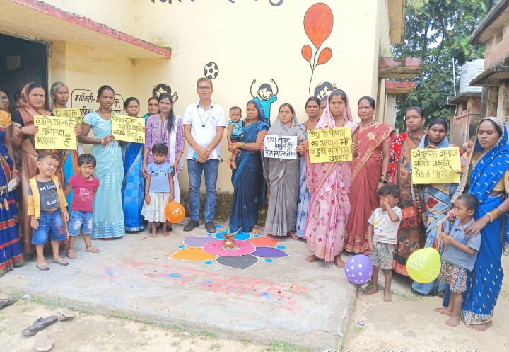 महासमुंद – राष्ट्रीय पोषण माह के तहत 13 से 23 सितंबर तक सभी 0 से 6 के बच्चो का वजन और ऊंचाई नापने हेतु वजन त्यौहार का आयोजन सभी आंगनवाड़ी केंद्रों में किया जा रहा है। पोषण माह और वजन त्यौहार आयोजन के दौरान अजय कुमार साहू ,जिला महिला एवं बाल विकास अधिकारी महासमुंद ने आंगनवाड़ी केंद्र टोंगोपानीकला , टोंगोदरहा, जोगीडीपा बागबाहरा परियोजना का भ्रमण किया गया । पोषण जागरूकता शिविर में गर्भवती, धात्री माताओं को जानकारी देते हुए बताया कि मां को गर्भावस्था से ही खान पान पर विशेष ध्यान देना चाहिए। मां में खून की कमी होने से गर्भ में बच्चे के शारीरिक विकास के साथ साथ मानसिक विकास भी बाधित होता है। मां के शरीर में मौजूद खून से ही बच्चे का पोषण होता है। कार्यक्रम में उपस्थित समुदाय के गर्भवती महिलाओं, शिशुवती माताओ, 0 से 2 वर्ष के बच्चों के माताओं, किशोरी बालिकाओं व ग्राम के अन्य सदस्यों को पोषण जागरूकता कार्यक्रम अंतर्गत पोषण व्यंजन प्रदर्शनी, पोषण रंगोली और पोषण स्लोगन के द्वारा सही पोषण के बारे में विस्तृत जानकारी दिया गया। जिसके अंतर्गत स्तनपान के फायदे, ऊपरी आहार, प्रथम 1000 दिवस में बच्चों के देख रेख, संतुलित आहार, व एनीमिया (खून की कमी) लंबे समय से खान-पान मे संतुलित आहार के कमी के कारण होता है। साथ ही एनीमिया को दूर करने के लिए स्थानीय स्तर मे मिलने वाले भाजी का सेवन सप्ताह मे कम से कम 3 से 4 बार करना चाहिए। सेक्टर- कसेकेरा, परियोजना- बागबाहरा की पर्यवेक्षक सरोजनी आदित्य ने जानकारी देते हुए कहा कि आंगनबाड़ी केंद्रो से प्राप्त होने वाले रेडी टू ईट फूड का सेवन भी निरंतर करने से शरीर को निरोगी रख सकते है।